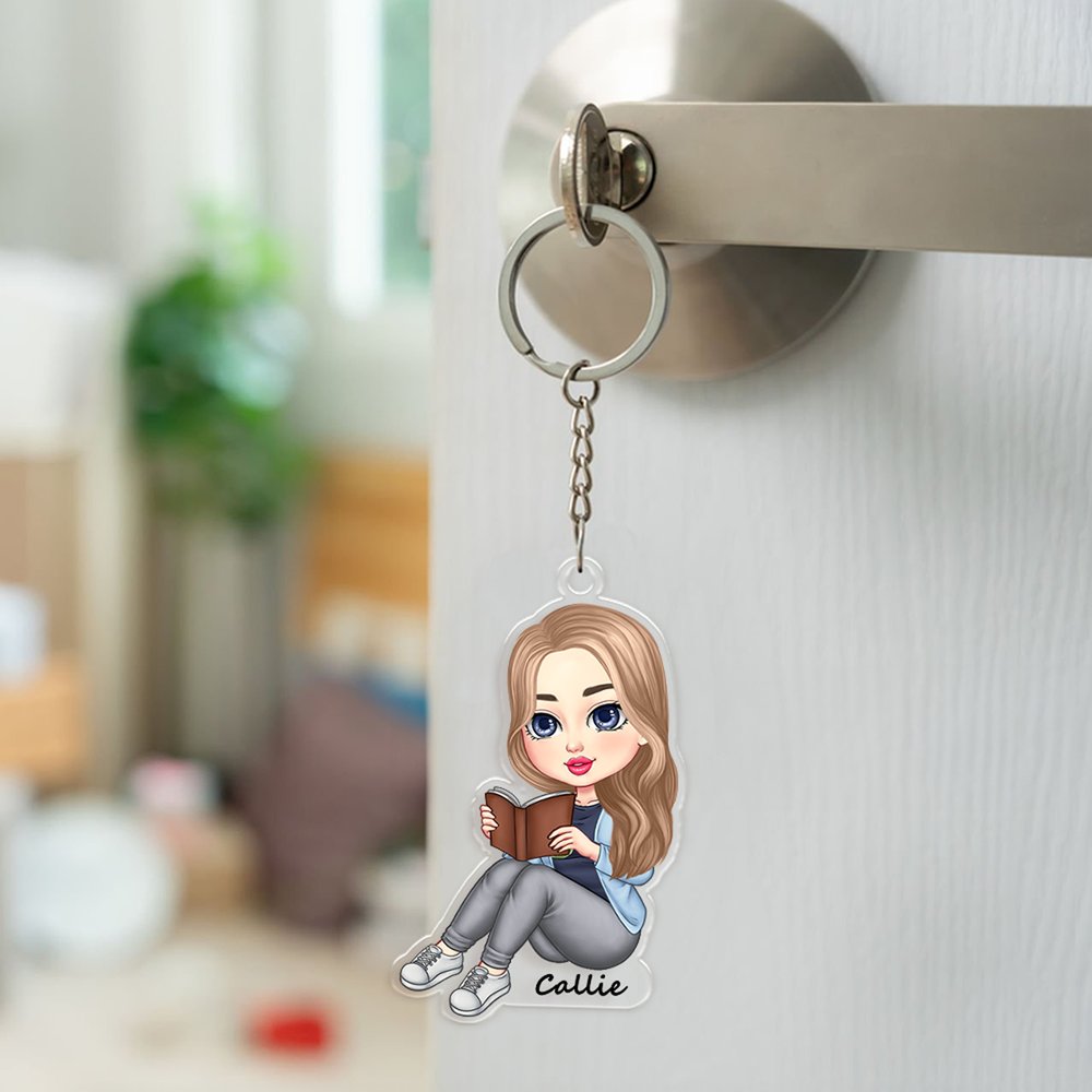 This keychain takes "reading" as its soul, cleverly integrating cartoon characters, book elements, and customized names to create an exclusive imprint for reading enthusiasts. The cartoon characters are lively and vivid, and the posture of sitting quietly flipping through books accurately captures the focus and tenderness while reading. Customized exclusive names can also be chosen, with the image of an elderly or young woman printed on acrylic material. The handwriting is clear, delicate, and not easily peeled off, making each keychain a unique presence.