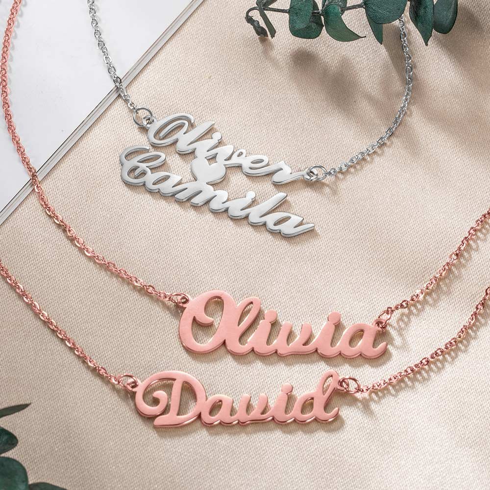 This custom double layered name necklace, this necklace has two styles to choose from, style 1 is a double-layered name necklace consisting of two chains, and style 2 has a double-layered name connected by a heart in the middle. You can customize the names of couples, sisters, friends, family members, etc, representing the intimate relationship between two people, suitable for you and your lover, to express love for each other, it is a meaningful necklace.