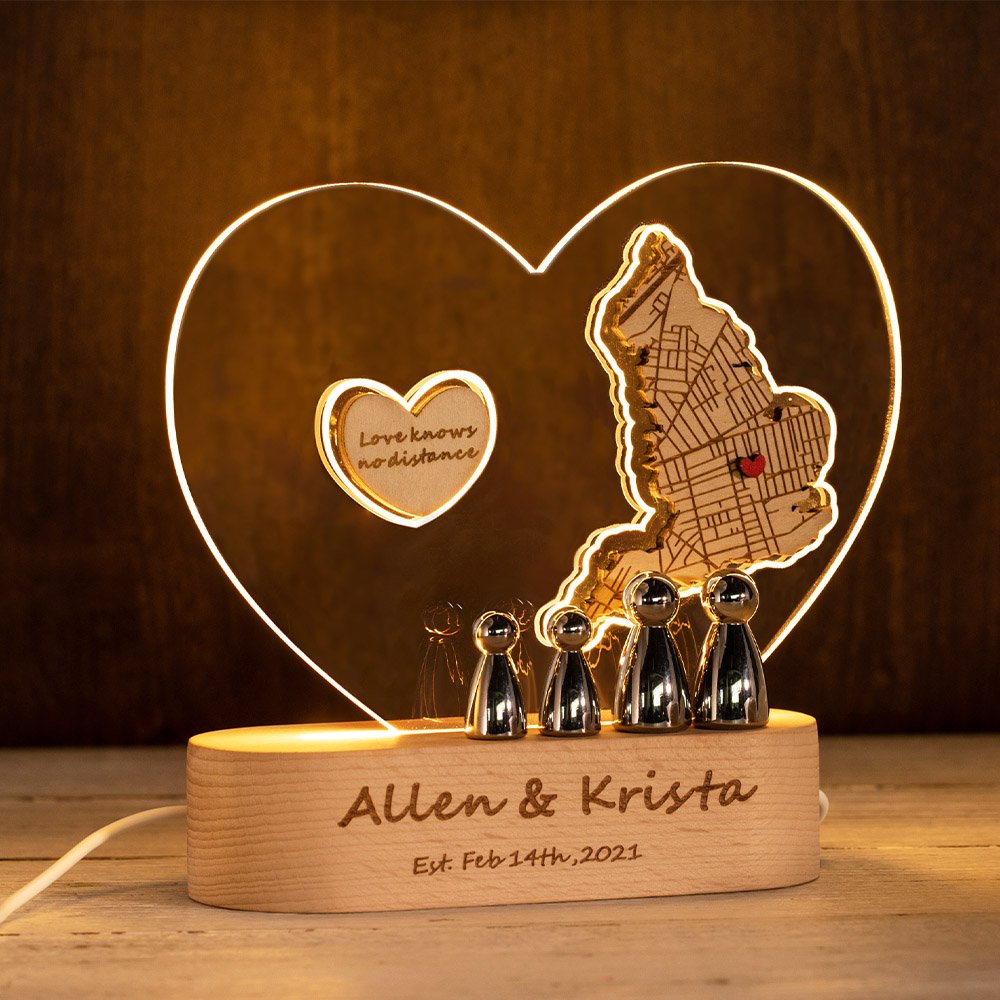 • Create a custom map night lamp with your own map location. Using the address provided, we will create a map design with the small red heart as a pinpoint on the map for your place. Then we will customize it with the text you entered. This is a professionally custom-designed product. It makes a great home decoration and conversation piece! It is a super fun keepsake and makes a truly special gift for your loved ones.