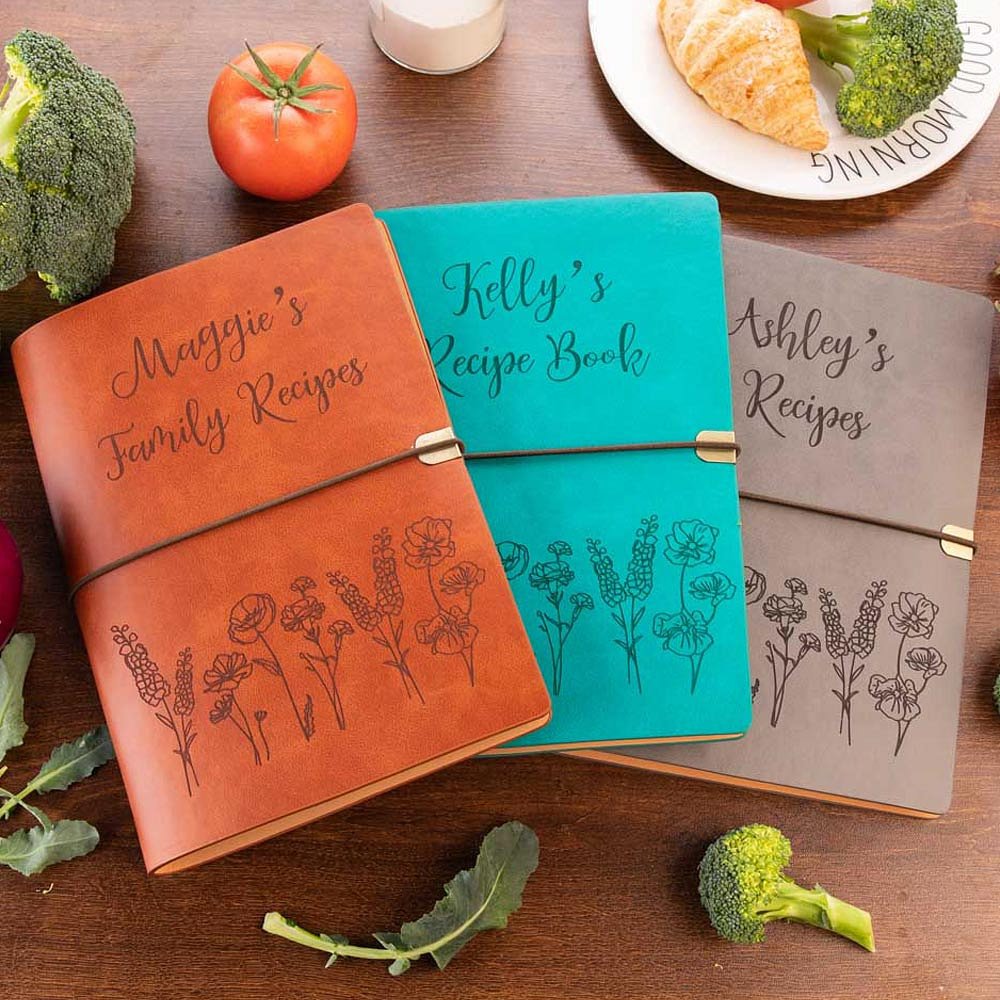 You can add your favorite text and we'll engrave it on the cover of your recipe book for free. Flexible leather cover with bungee cord in the middle to keep it from unraveling. Hardware binder with replaceable inner core. It is the perfect gift for anyone who loves or is learning to cook!