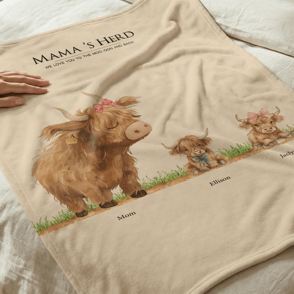 Featuring a cozy and soothing Highland cow parent-and-child theme, this blanket is filled with warmth and love. It supports Personalised text, names, and heartfelt messages, beautifully expressing a mother’s gentle care and deep affection for her family while creating a comforting and loving atmosphere that turns an ordinary blanket into a meaningful keepsake.