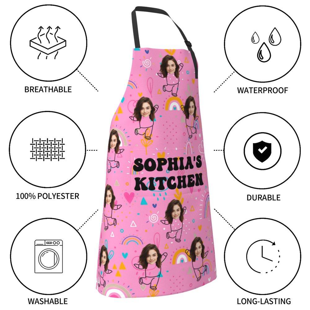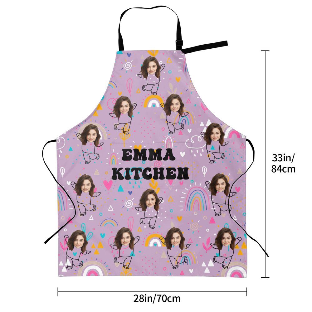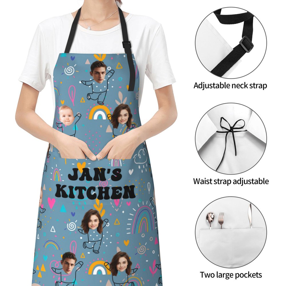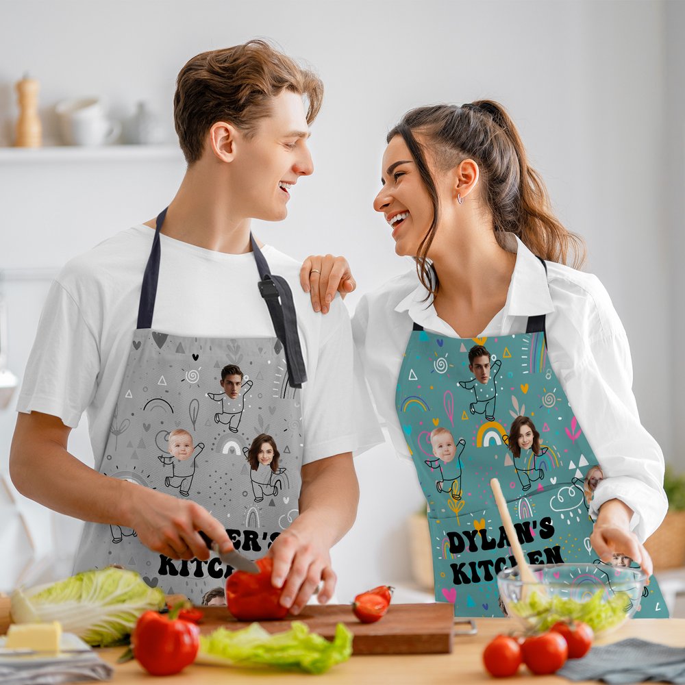 You can choose from multiple charming background colors. Input a name to add a personal touch. Also, select 1-12 face photos to upload, making the apron a unique keepsake that showcases your loved ones and adds a warm, personal vibe to the kitchen.