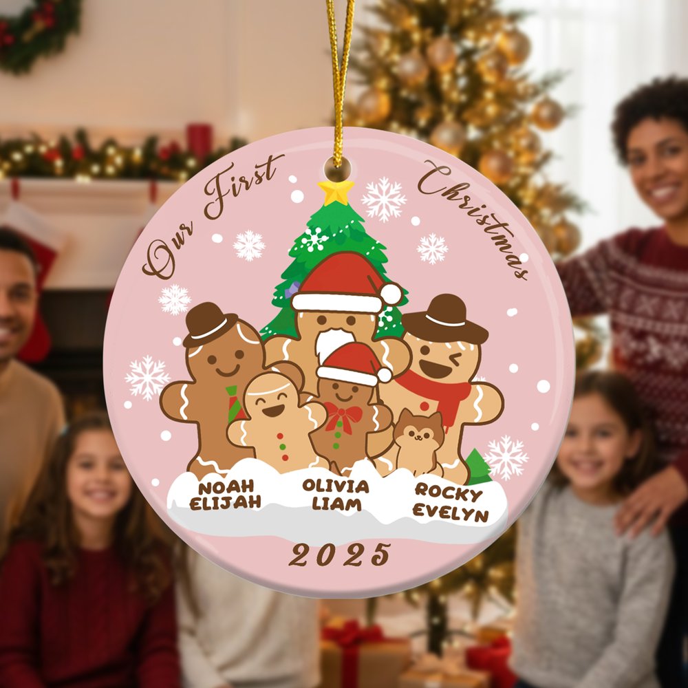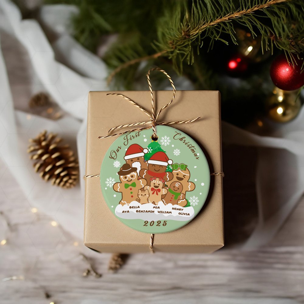 This ornament features a gingerbread man as its main design, with an adorable and charming overall appearance that symbolizes the sweet bonds of family. You can customize 1-8 gingerbread figures with names based on personal or family preferences, making each ornament unique and adding a warm atmosphere to the holiday season.