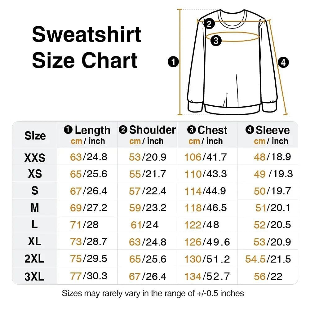 | Measurement: | Kid Sweatshirt - XS, S, M, L, XL, 2XL Adult Sweatshirt - XXS, XS, S, M, L, XL, 2XL, 3XL |