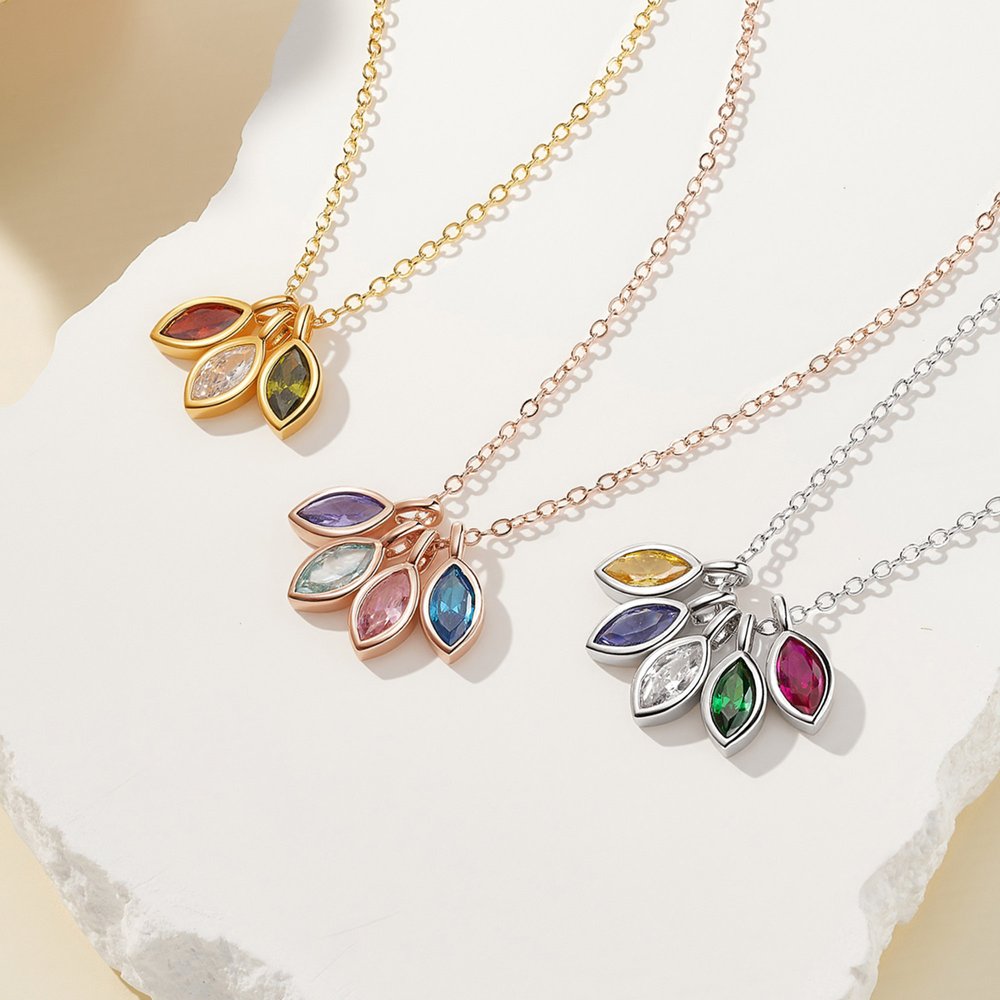 This necklace is eye-catching with its marquise-shaped birthstone design. 1 to 8 birthstones can be customized. Each crystal clear gem represents love and companionship. The simple and exquisite design makes it an ideal choice for daily wear, but also contains profound emotional meaning, keeping love close to the heart.