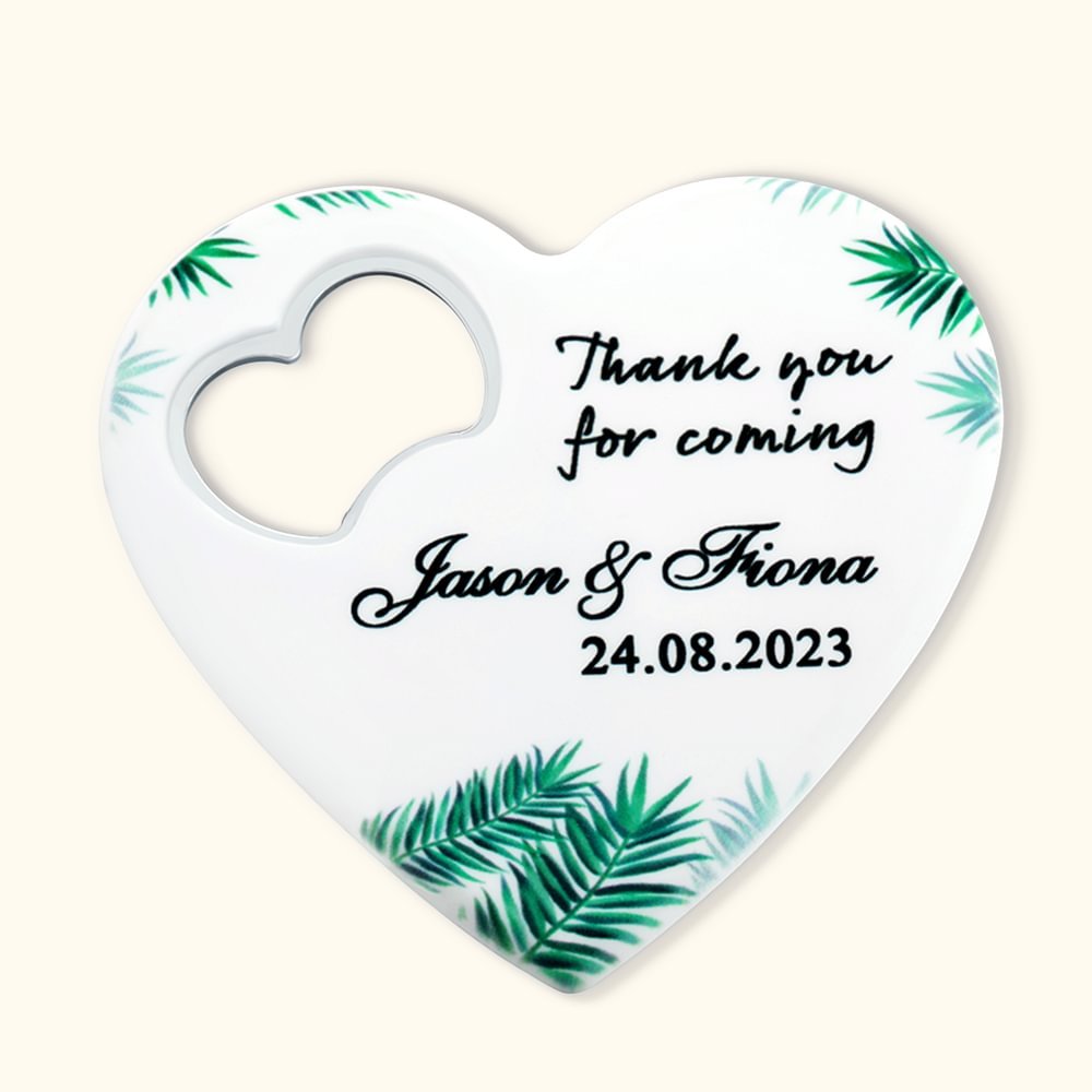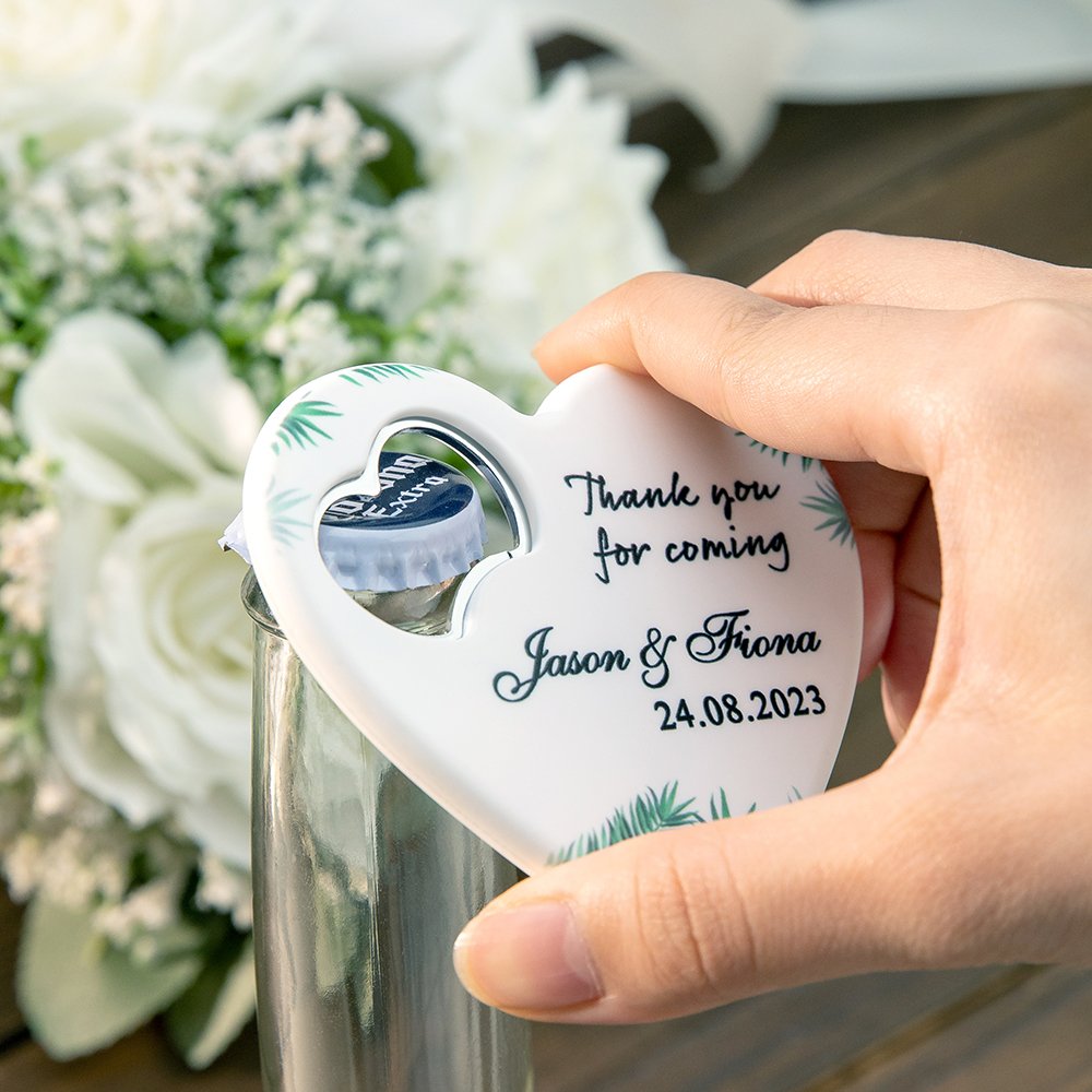 This heart-shaped bottle opener with a refrigerator magnet function is the perfect gift for wedding anniversaries. Whether it's to celebrate the first year of marriage or a milestone anniversary, this exceptional present will surely surprise and delight the couple. not only showcases your thoughtfulness but also adds a touch of Personalised elegance to their home.