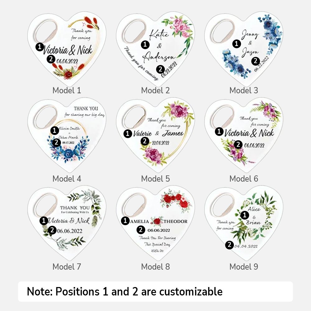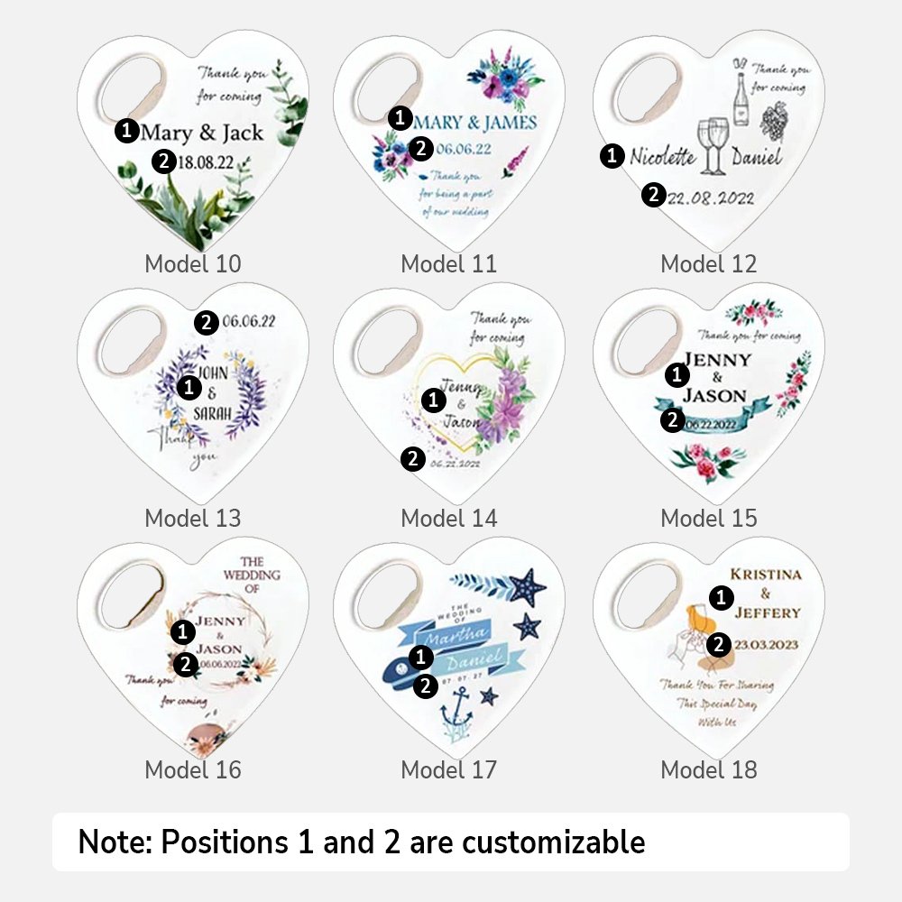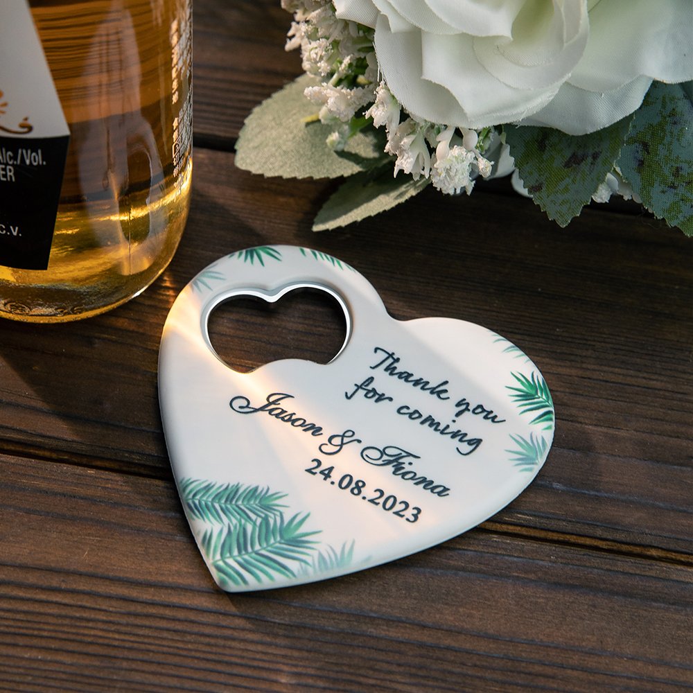 What better way to celebrate a wedding anniversary than by creating a lasting memory? Our heart-shaped bottle opener offers customization options that allow you to mark this special occasion uniquely. Engrave the couple's names and wedding date on the s surface, transforming it into a cherished keepsake they'll treasure forever.