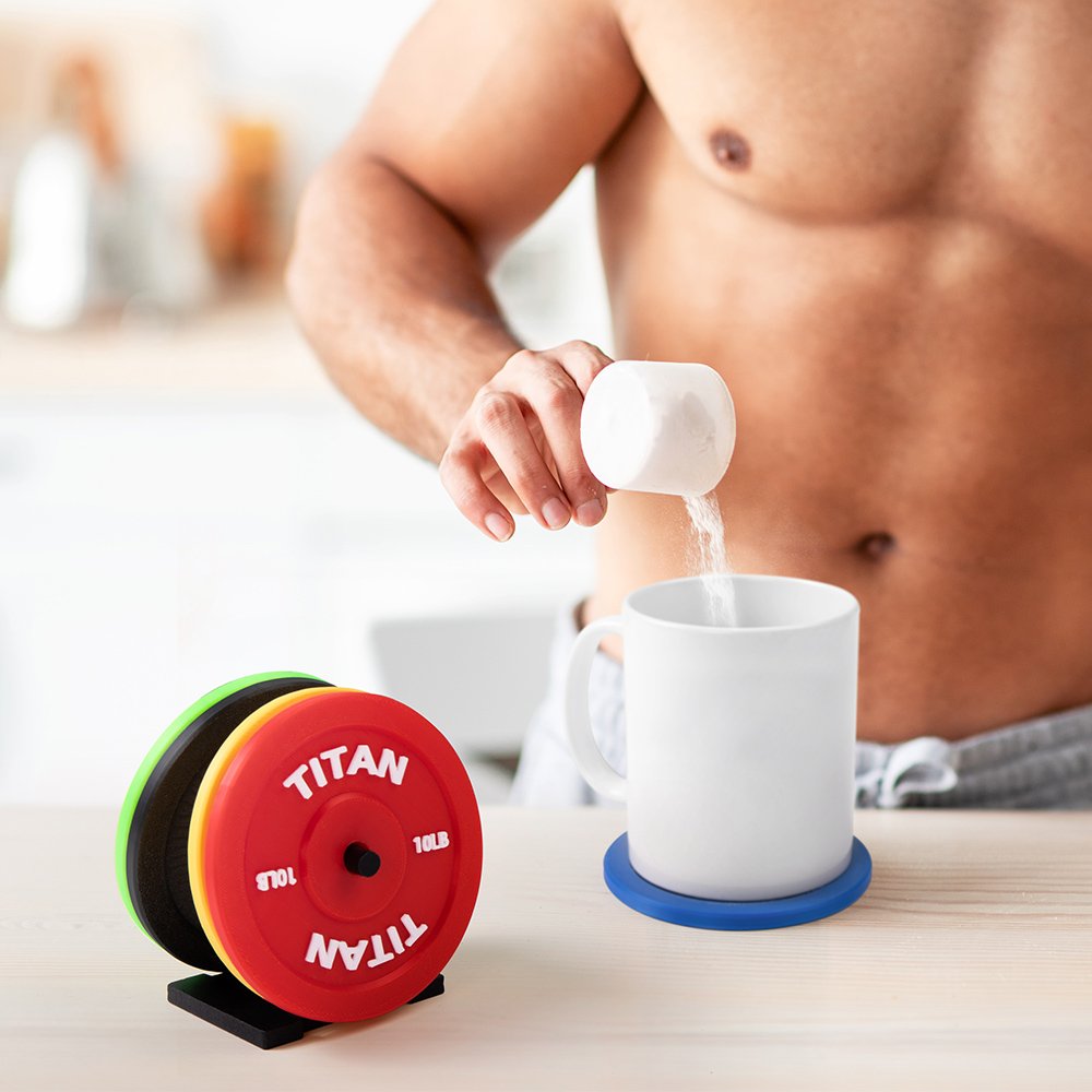 Our coasters offer a proportional set that matches the thickness of actual bumper plate weights. They are equipped with a more realistic real weight stand, making them ideally stored and placed as decorations in every corner of the home and gym, adding fun and vitality.