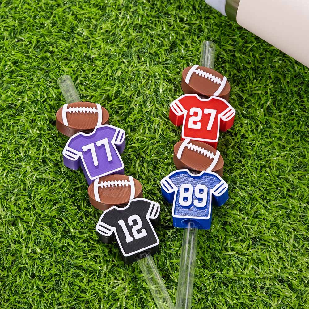 Inspired by football and jerseys, this straw topper set features rich colors and a novel design. The jersey section can be customized to your favorite number, making each suit a unique Personalised option. This design not only increases the fun of use, but also matches perfectly with most cups to add a fun daily drink.