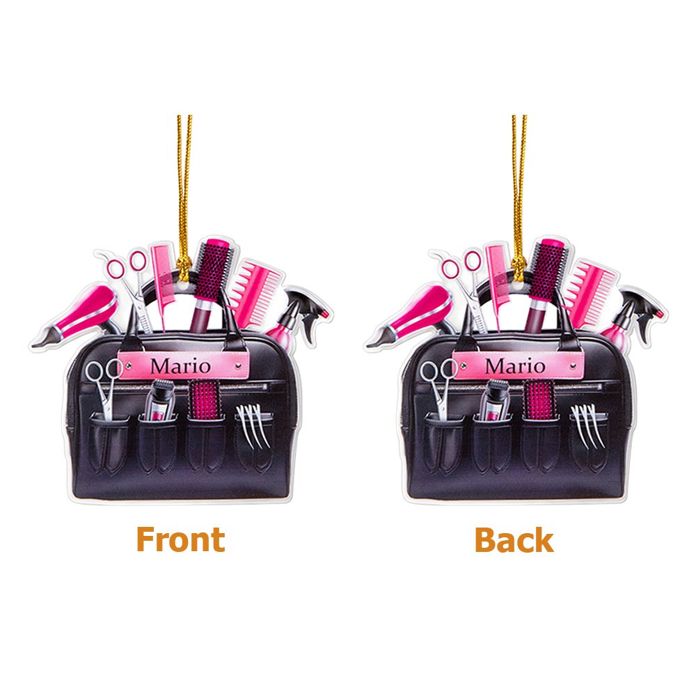Inspired by a 3D stereoscopic hair kit, this ornament contains a variety of hair tools, such as scissors, hair dryer, comb, curling iron, etc., providing a distinctive fashion accessory that not only attracts the eye but also reflects the love and respect for the art of hair. The ornament can also be customized with a name to make it even more distinctive.