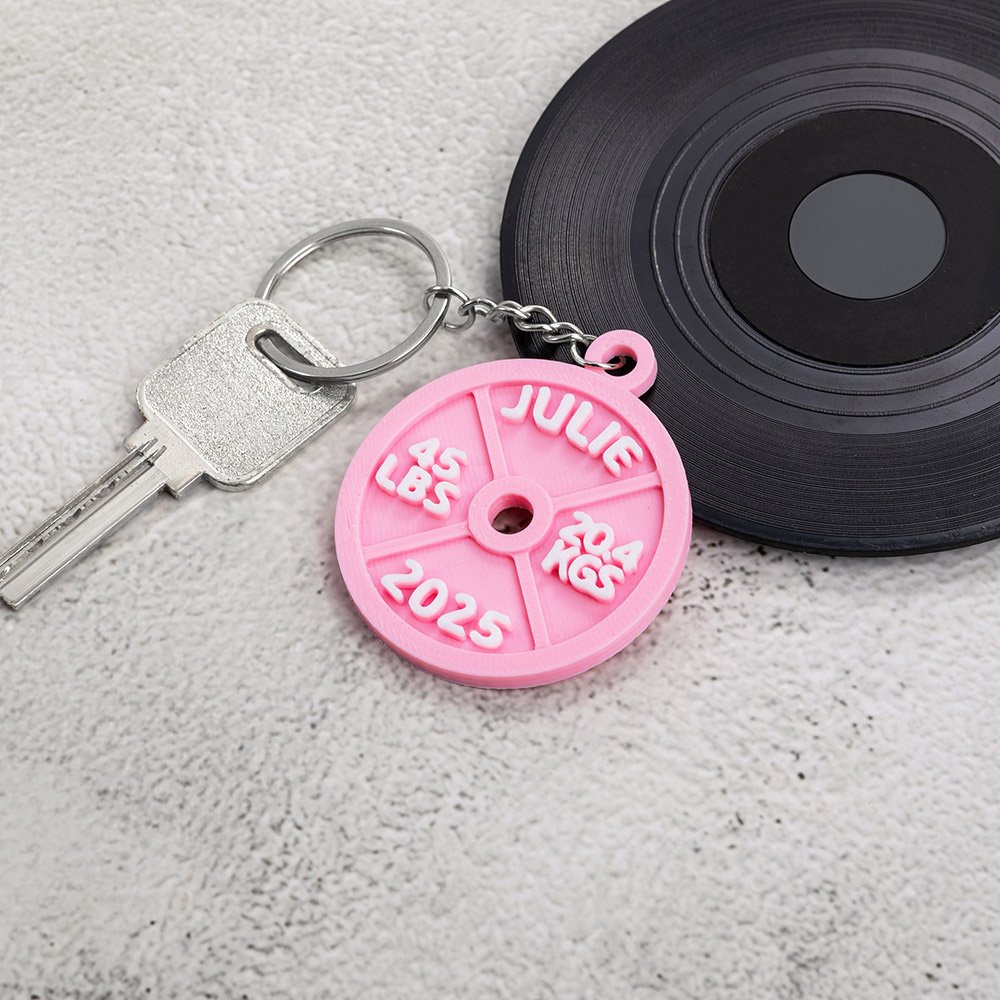 This keychain features a vibrant and playful miniature weight plate design that is cute and engaging. Its lifelike detailing, created through advanced 3D printing technology, adds a unique charm to your everyday accessories.