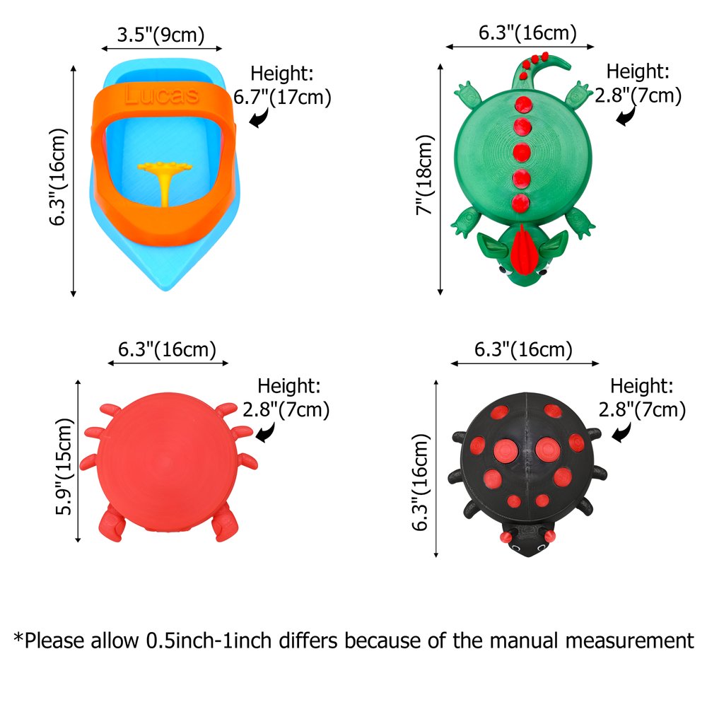 | Measurement: | Crab - 5.9'' Γ 6.3'' Γ 2.8''(15cm Γ 16cm Γ 7cm) Boat - 6.3'' Γ 3.5'' Γ 6.7''(16cm Γ 9cm Γ 17cm) Ladybug - 6.3'' Γ 6.3'' Γ 2.8''(16cm Γ 16cm Γ 7cm) Dinosaur - 7'' Γ 6.3'' Γ 2.8''(18cm Γ 16cm Γ 7cm) |