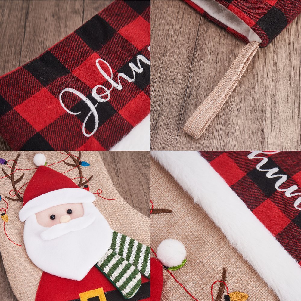 This Christmas stocking is thoughtfully designed with 4 charming 3D styles: snowman, Santa Claus, polar bear, and reindeer—each crafted with exquisite detail, as if brought to life from a storybook. Choose from 4 distinct fonts to Personalise it with a name, making it a one-of-a-kind holiday decoration. The classic red-and-black checkered cuff, paired with a soft fuzzy trim, adds a cozy traditional touch.