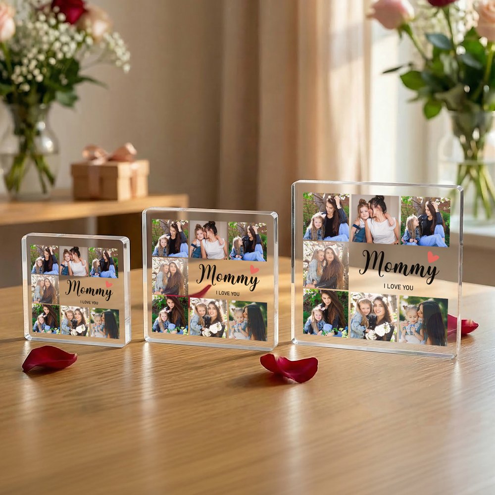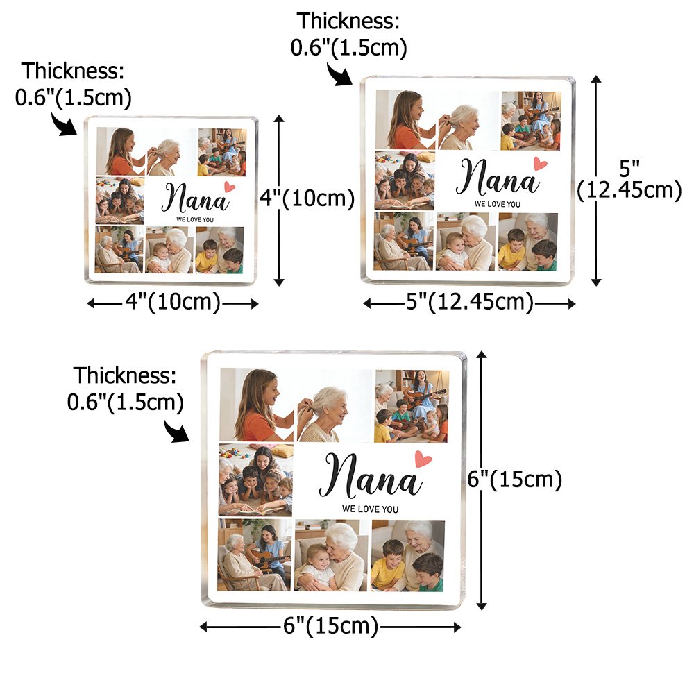Personalised 7 Family Photos Collage Square Acrylic Plaque with Title and Text Home Decor Mother's Day Birthday Gift for Mom Grandmother
