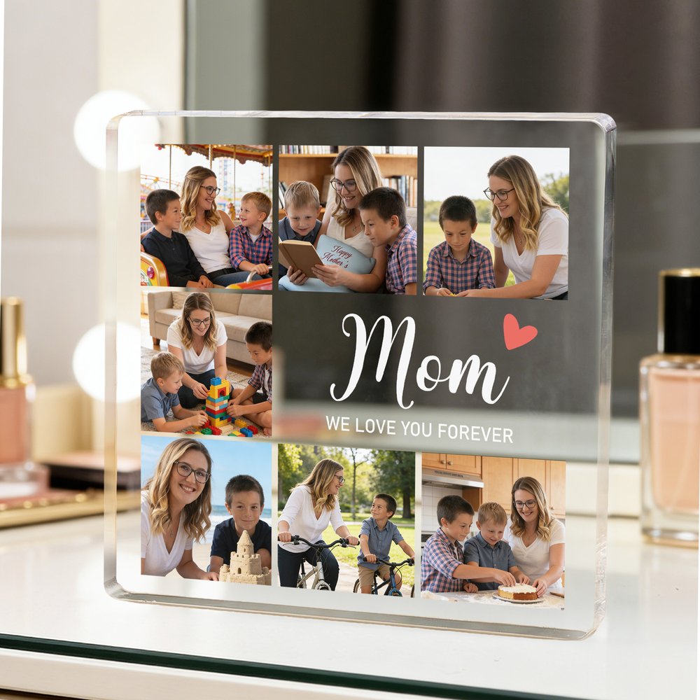 This decorative piece is inspired by family memories and features a photo collage style specially designed for Mother's Day. It can be customized with photos, title, and messages of blessing, creating a unique keepsake of family love and affection.