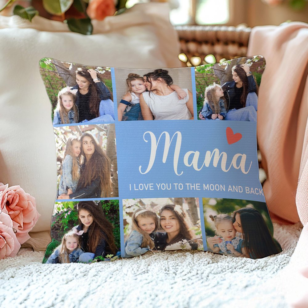 This pillow cover features a 7-grid photo collage layout, allowing you to upload precious photos with your mom or grandma, capturing those precious moments of everyday time together. The centre area allows you to customize your mom or grandma with their own nickname, accompanied by a heartwarming text and adorned with a red heart pattern, enhancing the sense of exclusivity and expressing your love.