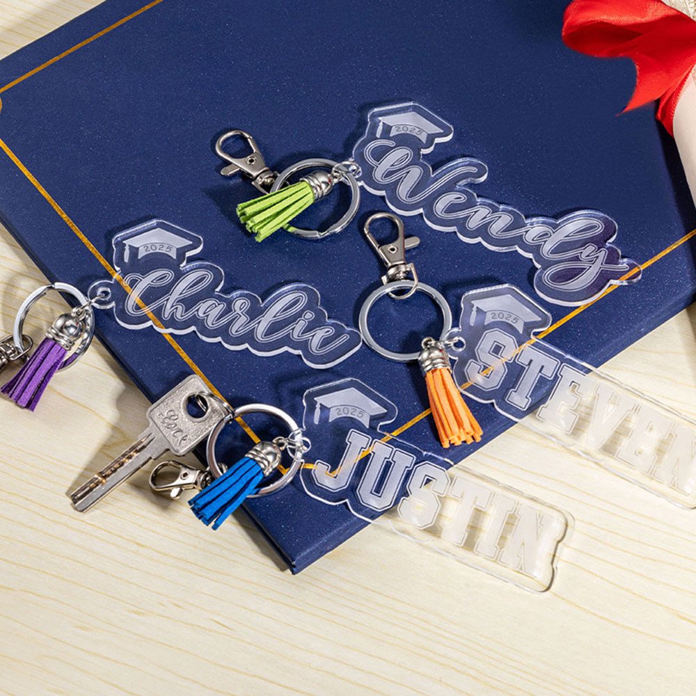 Whether you're shopping for a high school, college, or graduate school graduate, this Personalised acrylic keychain is a universally appealing gift that celebrates their hard work and achievement.