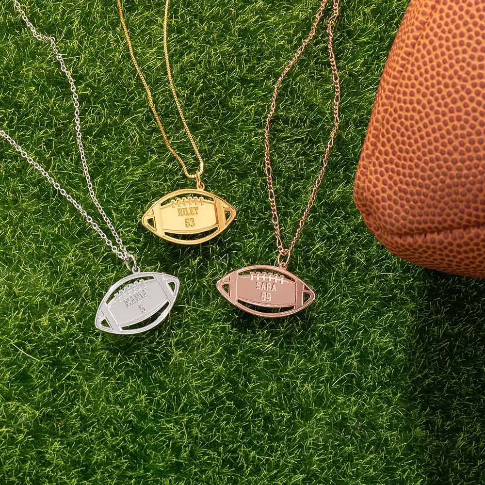 These football-themed necklaces are perfect for daily wear or cheering on your favorite player during a game. They work as a stylish accessory that showcases your love for the sport and your support for your preferred athlete.