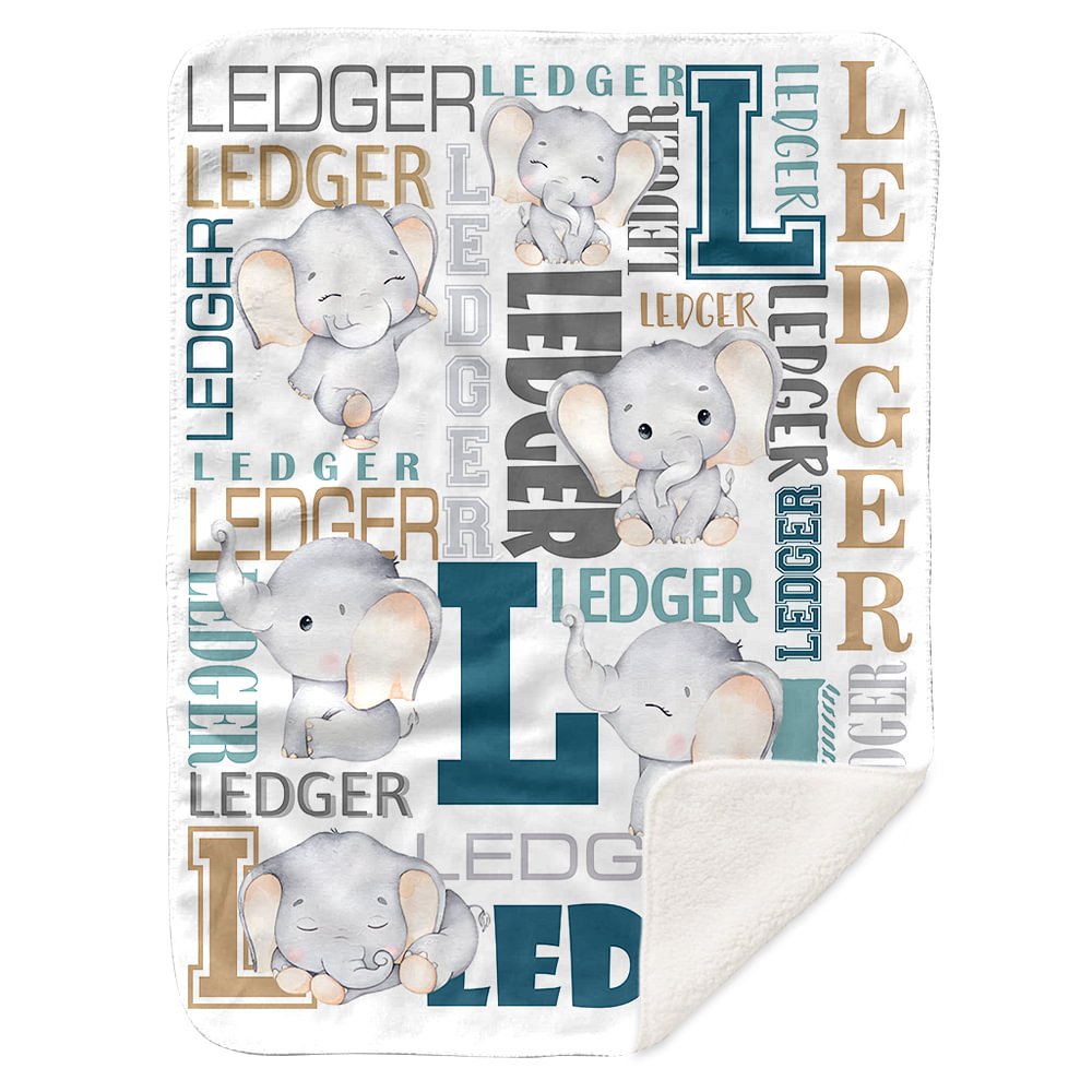 Personalised Baby Elephant Soft Blanket with Name Fleece Sherpa Material Birthday Baby Shower Gift for Kid