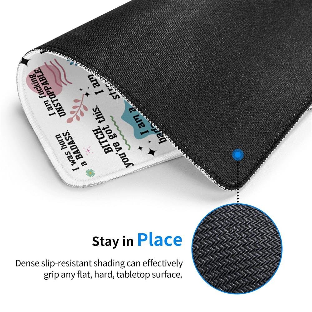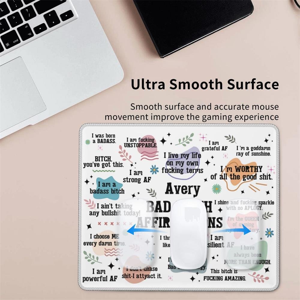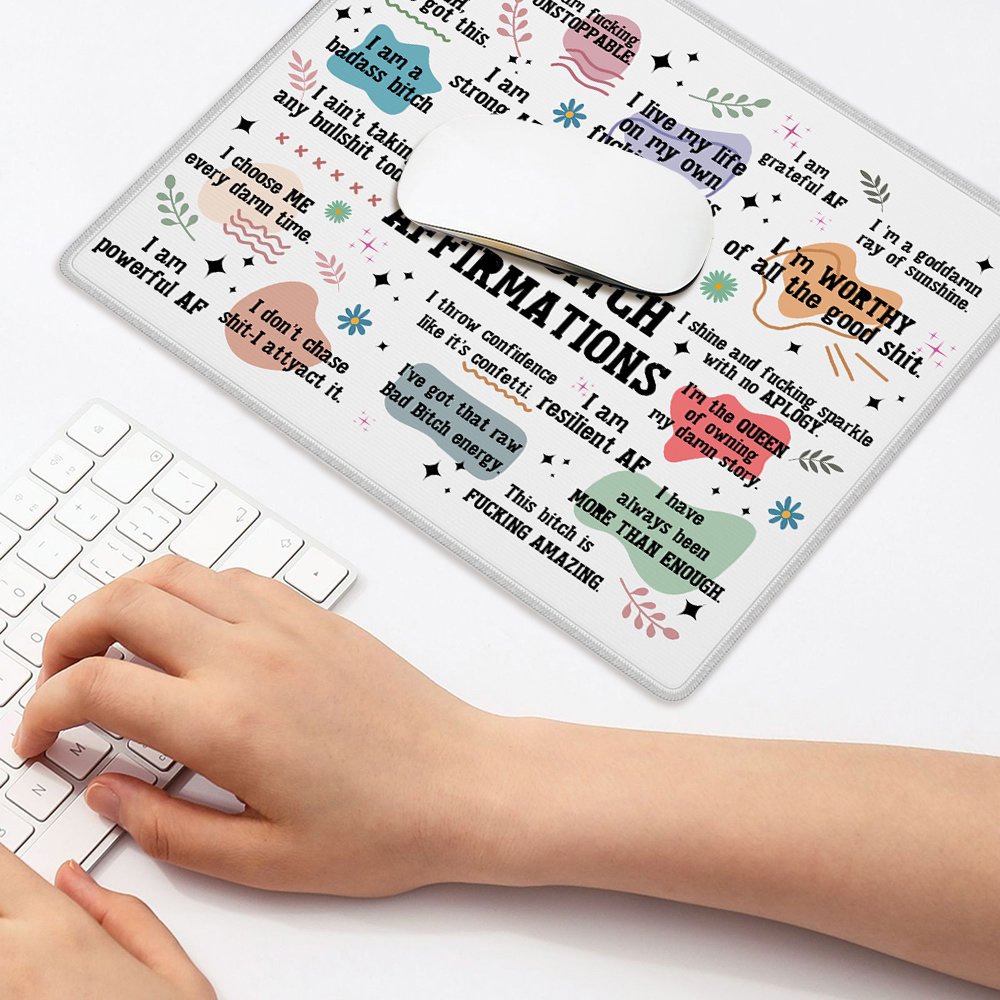 This mouse pad conveys a strong sense of self-affirmation and a positive attitude towards life through a rich and unique language design. With "BAD BITCH AFFIRMATIONS" as the center, it is dotted with various bright colors, positive texts, and decorative elements such as flowers, stars, and branches. The layout is compact but not messy. You can add your name to make it have higher sentimental value.