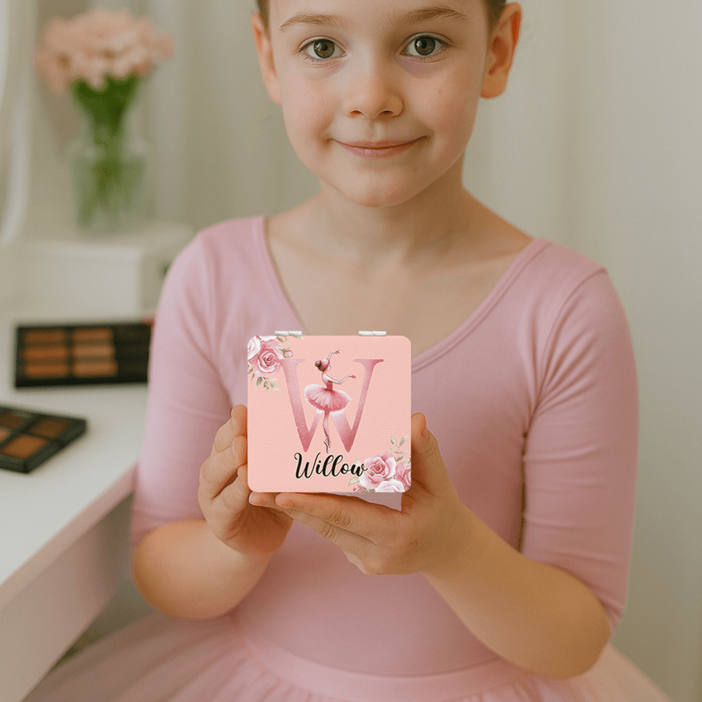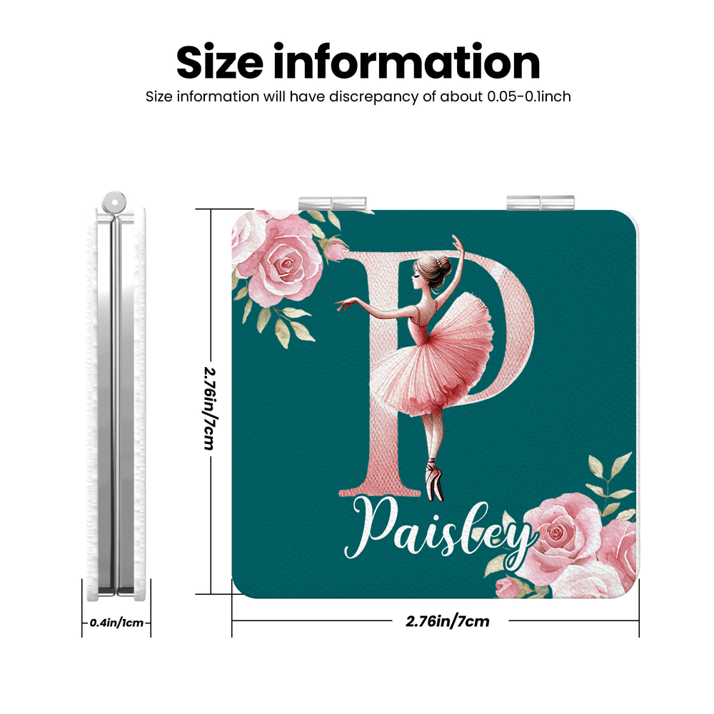 Personalised Ballerina Alphabet Floral Double-Sided 1X 2X PU Leather Makeup Mirror with Name and Initial Birthday Anniversary Gift for Ballet Lovers