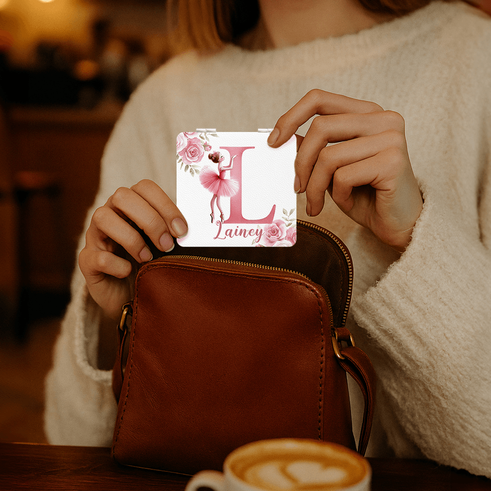 This mirror features an elegant ballerina motif and comes in 18 background colors to showcase your personal style. You can also add your name or initials, choose a floral pattern, and create a unique accessory that perfectly blends artistic charm with Personalised elegance.