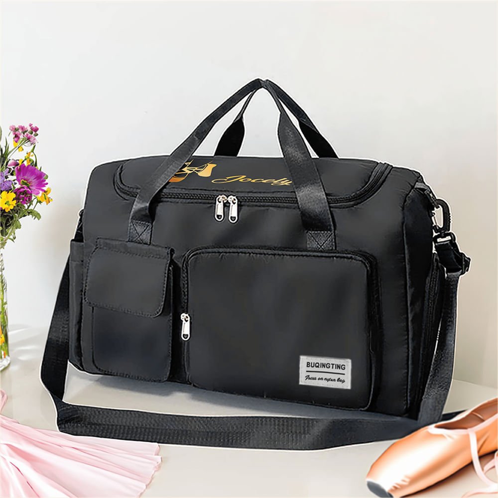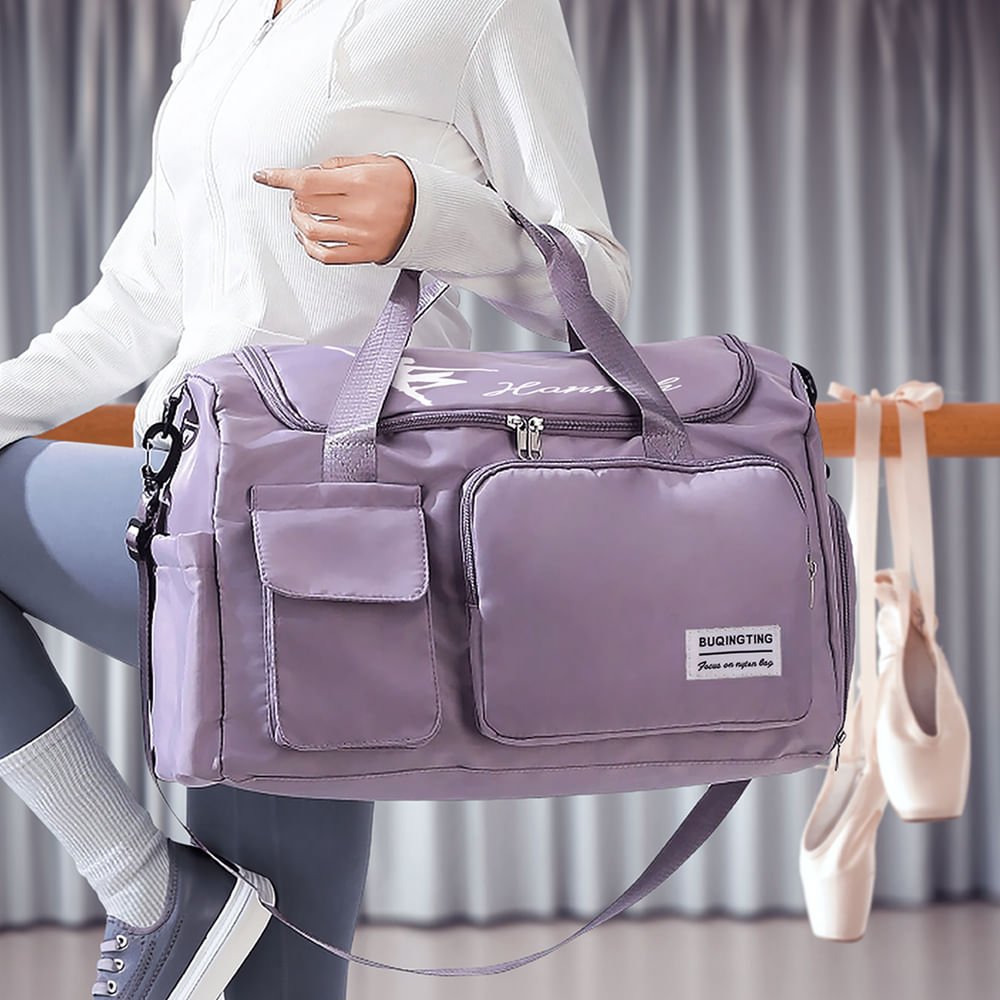 This bag has a large capacity, and the spacious interior space features a zipper compartment for quickly loading necessities such as sportswear, dance shoes, water bottles, towels, etc. Four external pockets are convenient for storing water bottles, small items, shoes, and other necessities.