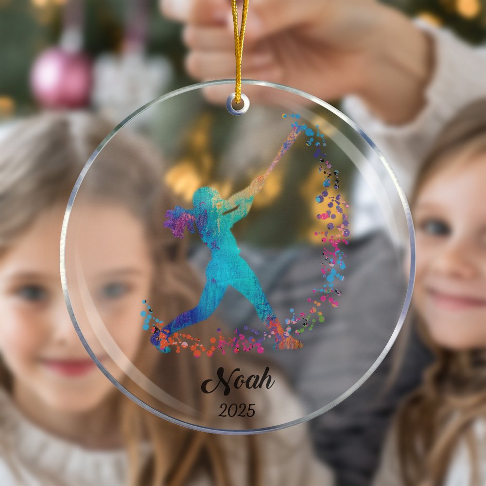 Personalised Baseball Player Silhouette Transparent Acrylic Christmas Ornament with Name Tree Hanging Christmas Gift for Baseball Players Lovers
