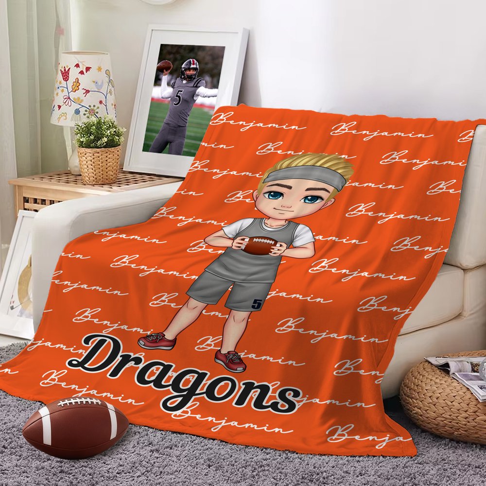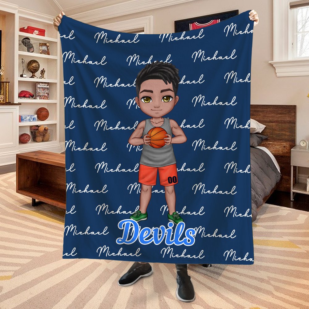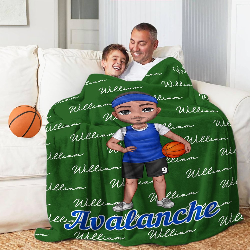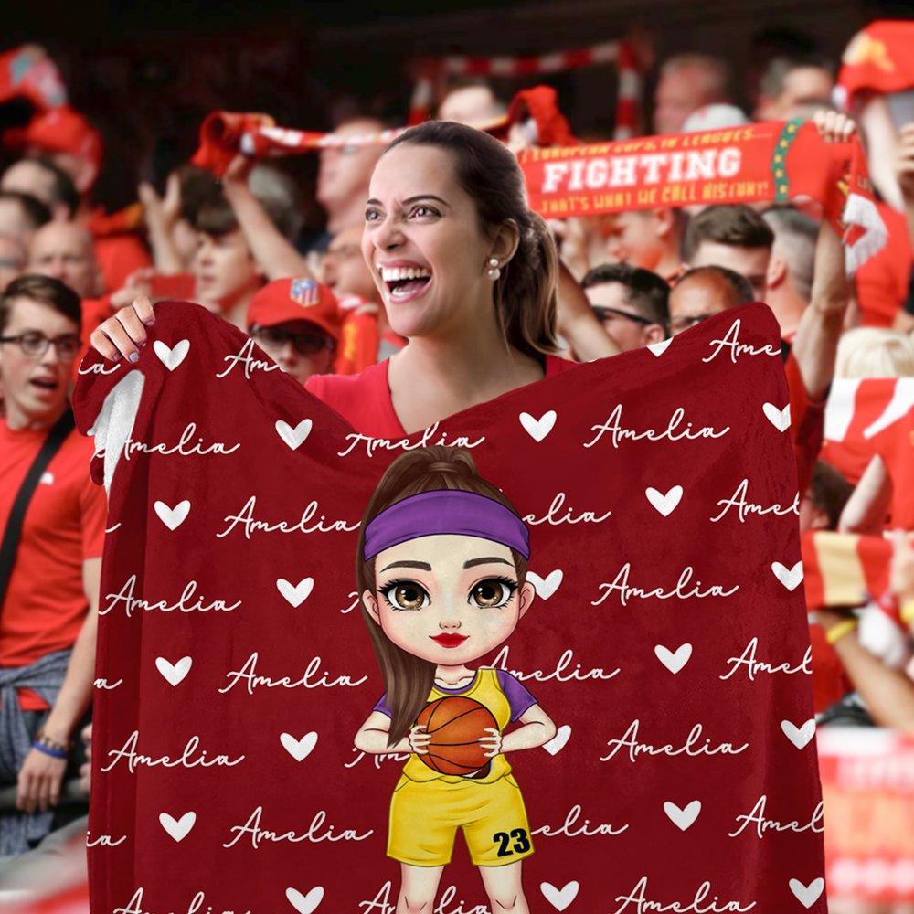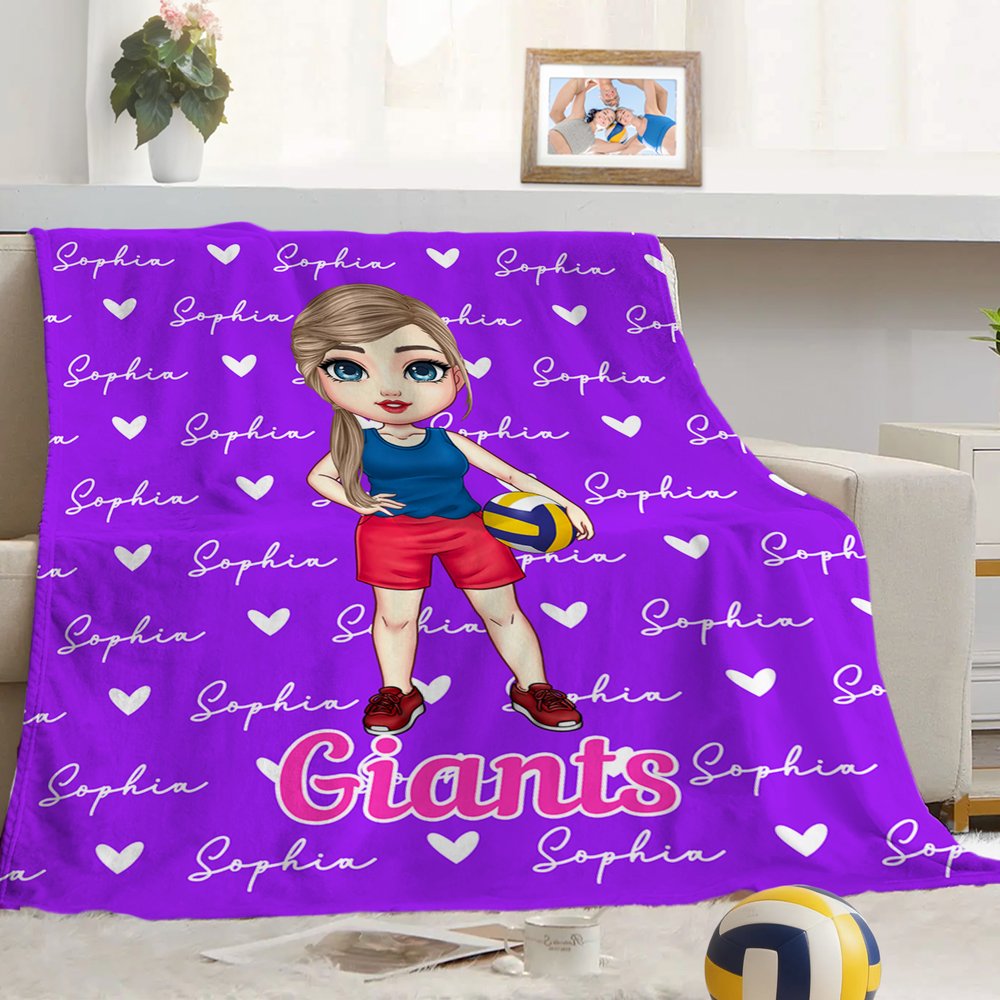 Personalised Basketball Volleyball Cartoon Character Soft Throw Blanket with Number and Name Senior Night Game Day Team Gift for Sports Lovers Coaches