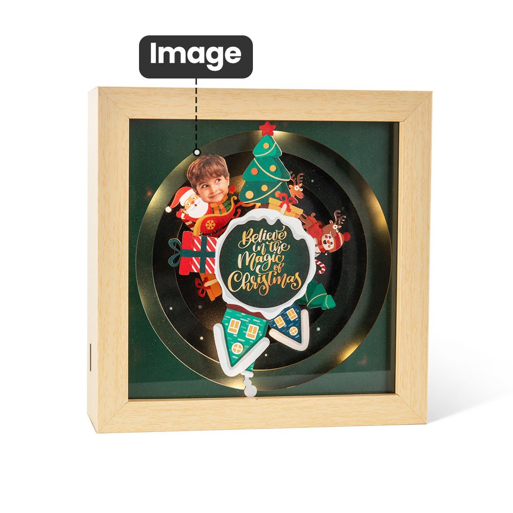 This Christmas music photo frame can be rotated, illuminated, and played with music by the built-in movement. Visually, you can see the Christmas tree, snowman, gifts, and the cabin, and aurally, you can listen to "It's Christmas Time", which can make the children immersed in the wonderful and beautiful Christmas atmosphere.