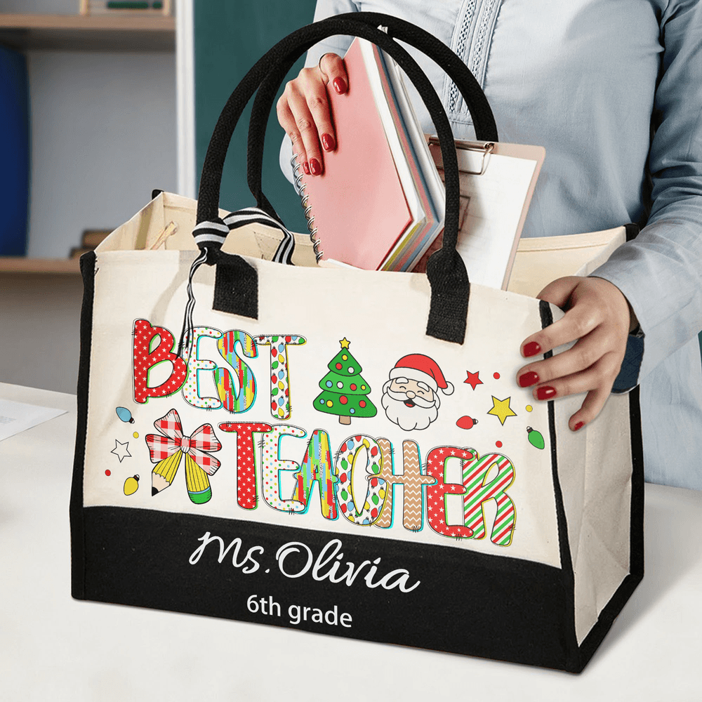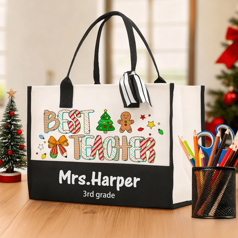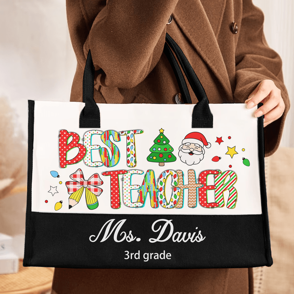 This tote bag is designed with the dual cores of the teaching profession and the Christmas spirit in mind. Its white and black color scheme is complemented by vibrant Christmas elements (such as Christmas trees and Santa Claus), and the words "BEST TEACHER" are printed on it, directly expressing praise for teachers. Customizable with your name and text, these three features make it a unique professional holiday accessory.