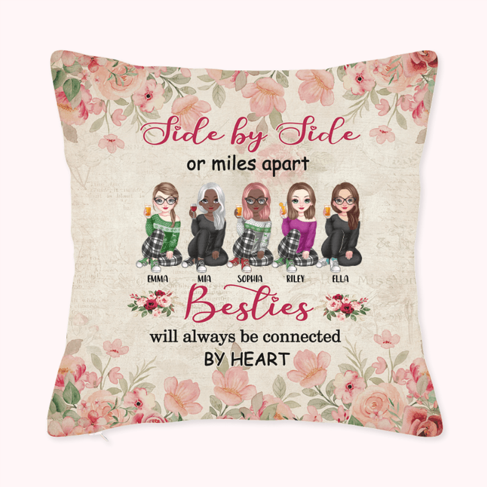 Personalised Besties Will Always Be Connected By Heart Vintage Rose Background Throw Pillow Cover Birthday Gift Sofa Decor
