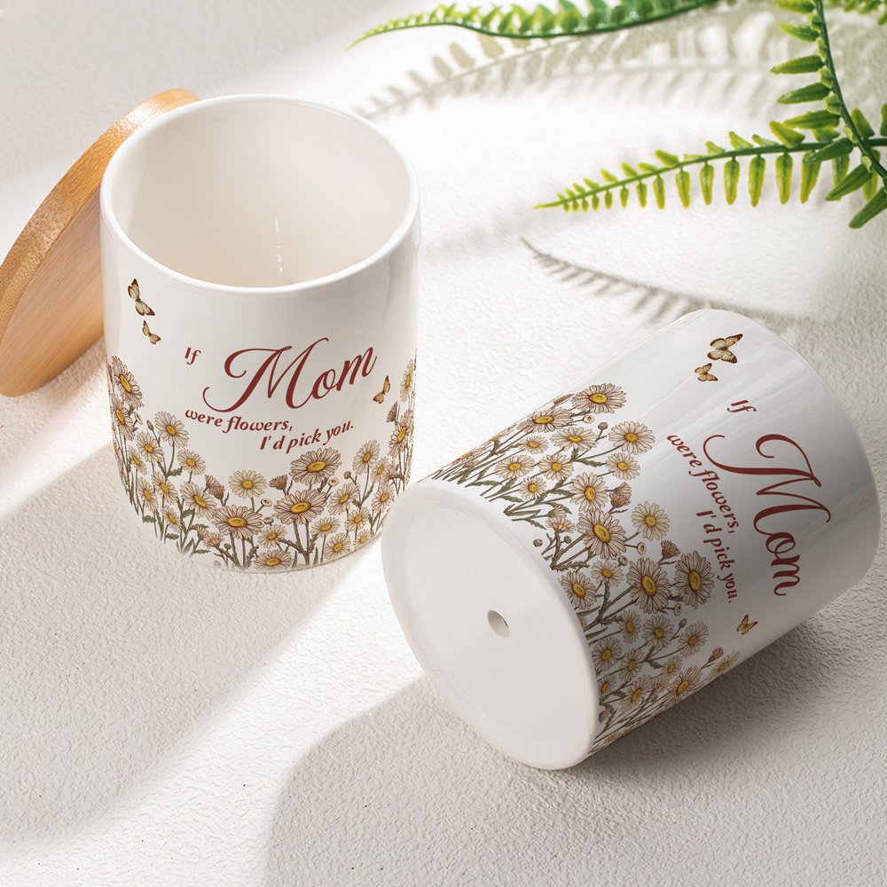 Personalised Birth Flower Butterfly Ceramic Planter Pot with Nickname and Bamboo Tray Daily Use Mother's Day Gift for Mom Grandma