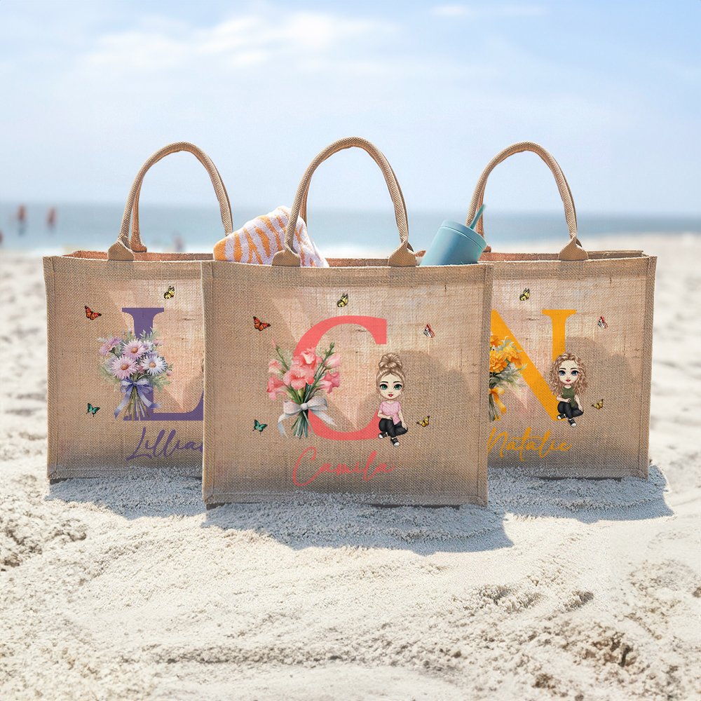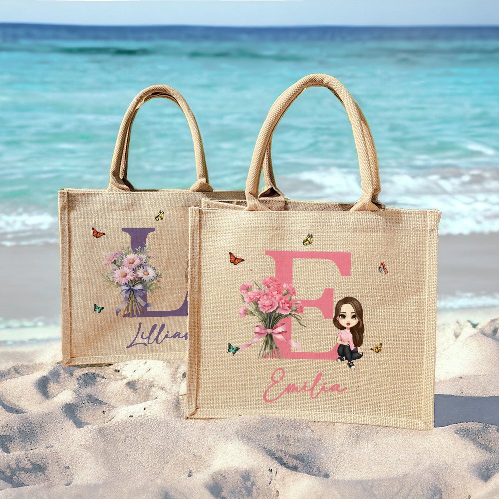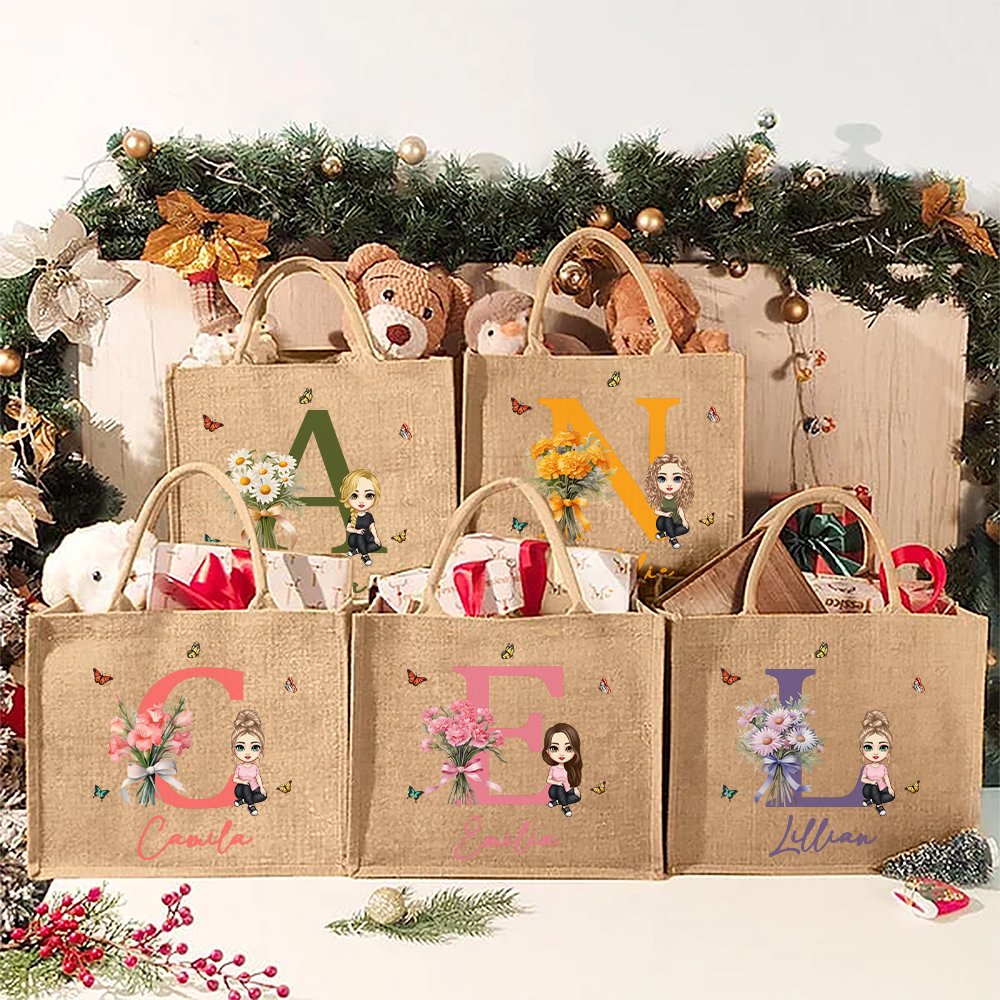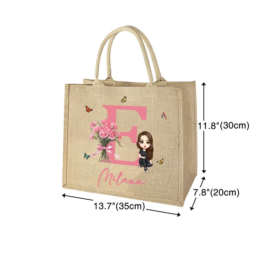 This reusable tote bag features a charming cartoon character representing your birth flower, adding a personal and whimsical touch. You can customize a name and an initial on the bag. The customization makes it a one-of-a-kind accessory that reflects your personality or that of the gift recipient.