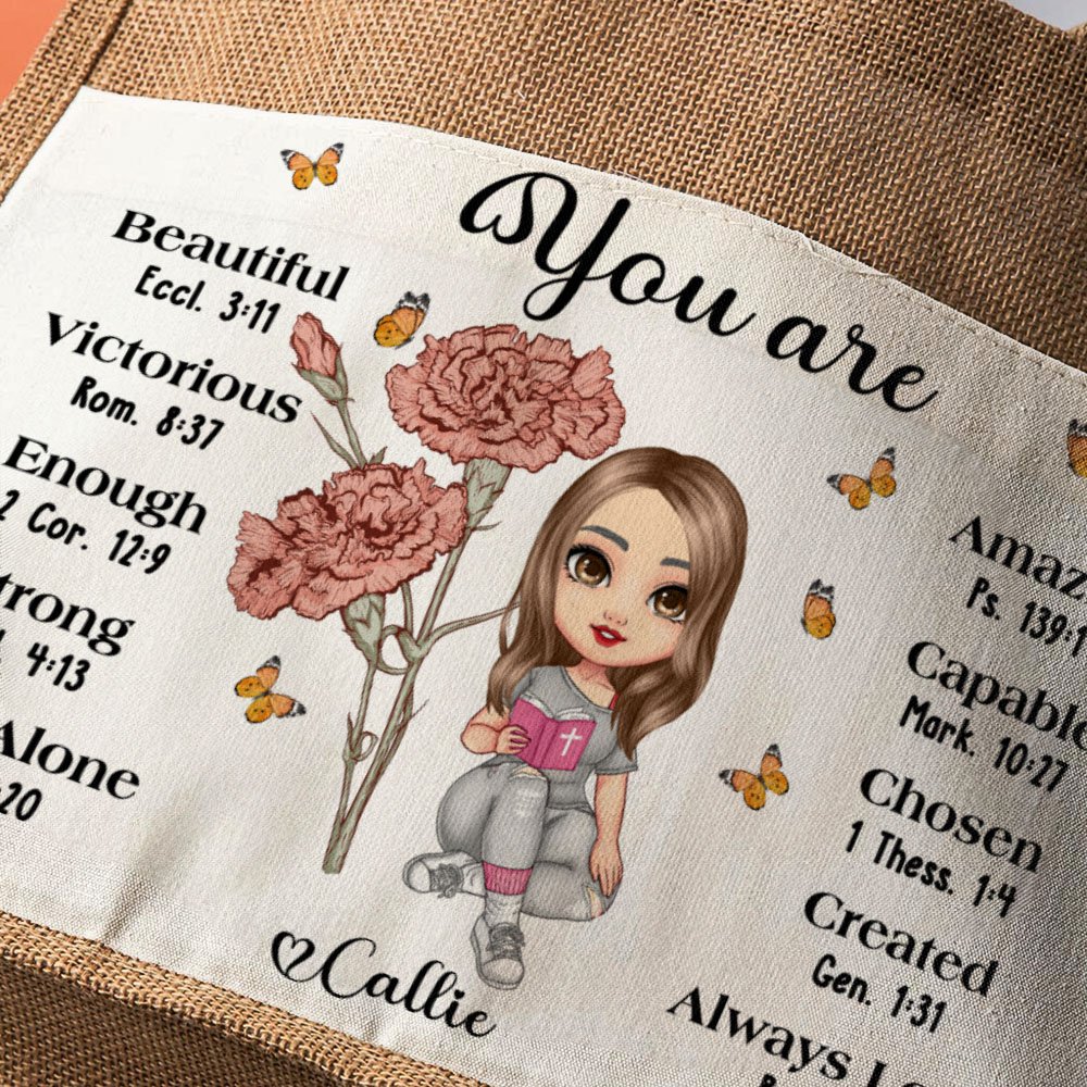This Personalised tote makes an excellent Christmas or birthday gift for women. Its combination of faith-based elements, personalization, and practicality shows thoughtful consideration for the recipient's beliefs and daily needs. It's more than just a bag; it's a wearable expression of faith and individuality, perfect for spreading joy and inspiration during the holiday season.