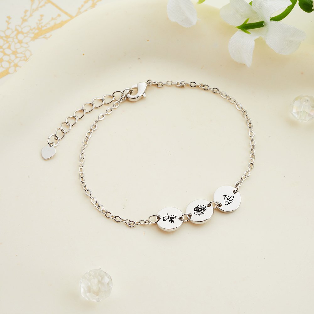 Each disc on the bracelet is adorned with a delicate birth flower, representing the unique birth month of each beloved family member. Birth flowers have long been associated with specific months and carry deep symbolism and meaning. This collection allows you to customize the bracelet with the birth flowers of your mom, grandma, and other family members, creating a beautiful representation of your family's love and unity.