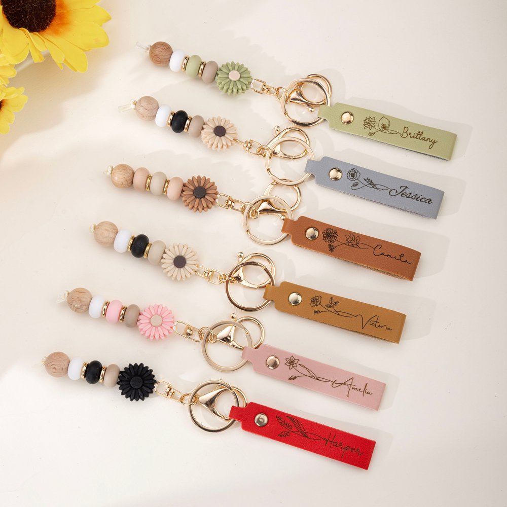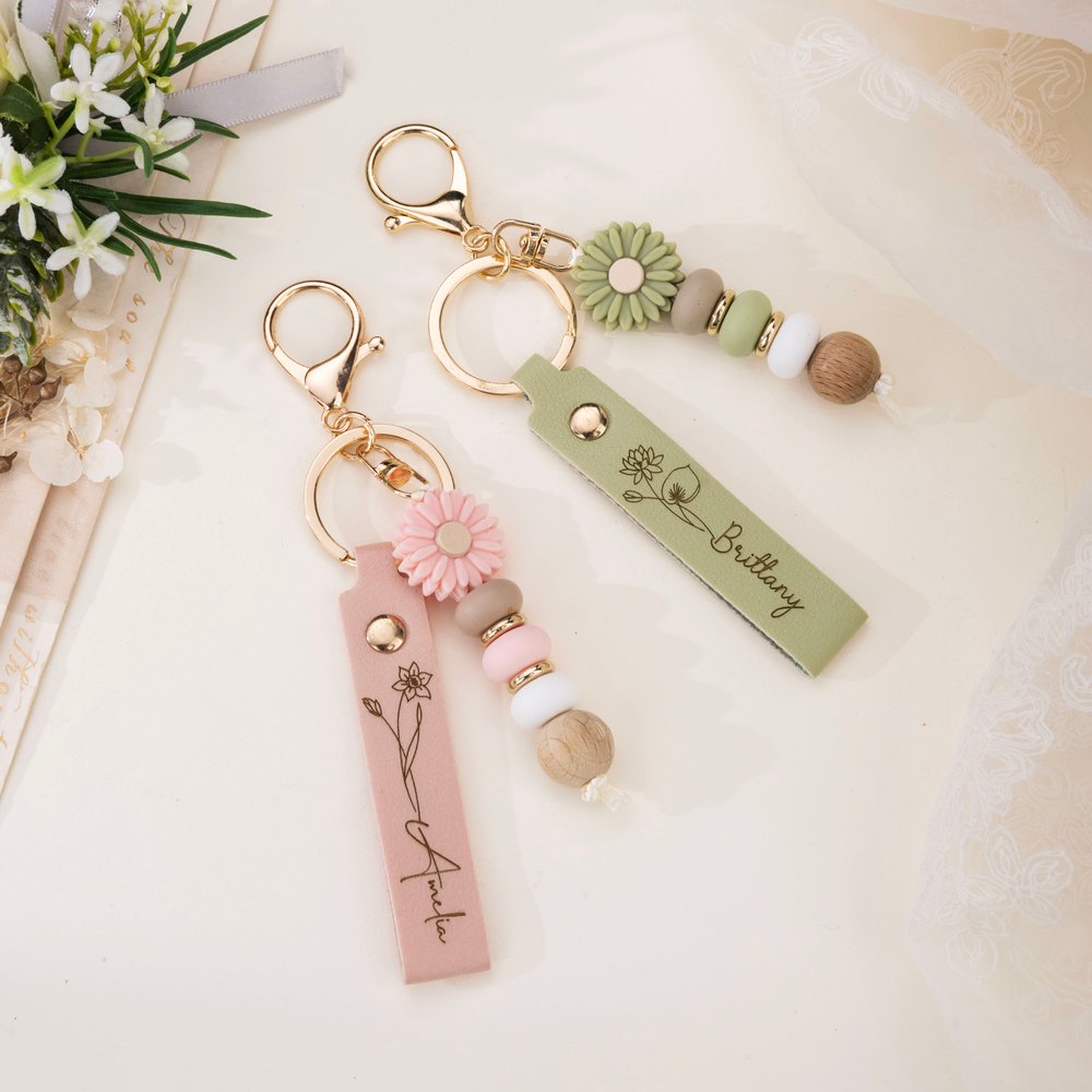 This charming keychain features a beautiful birth flower design along with a Personalised name, complemented by a daisy bead that adds a touch of brightness. The delicate daisy charm is made from silicone, giving it a soft, playful look. Each piece is uniquely crafted, allowing individuals to showcase their distinctive personality while celebrating their special day or moment.