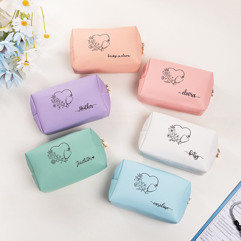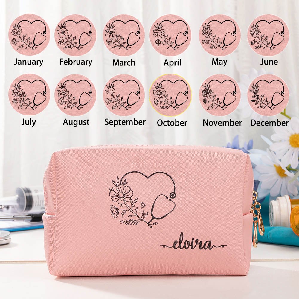 This makeup bag is decorated with a stethoscope pattern with a birth flower, which not only symbolizes the professional identity of medical professionals but also adds a touch of fun and cute. You can also customize the name on it to make it even more special.