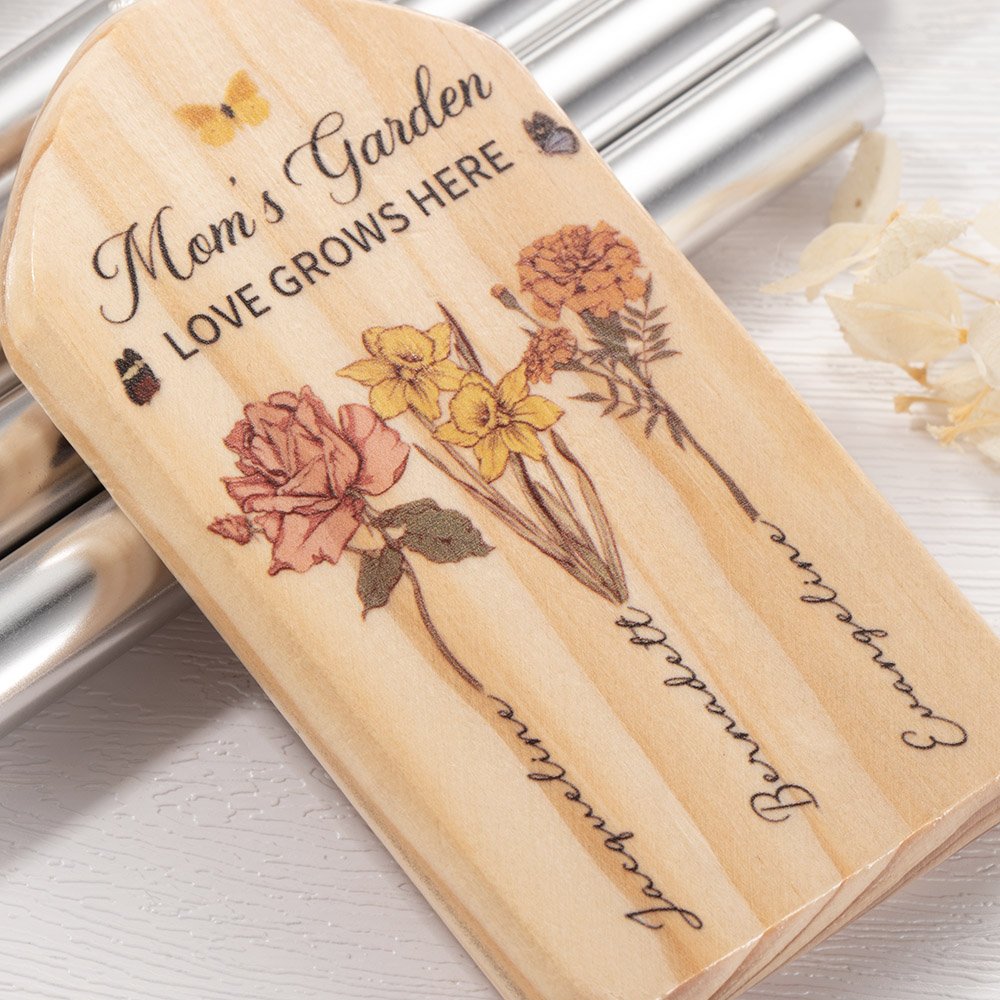 Personalised Vintage Birth Flower Wind Chime with Wood Plate Floral Garden Decor Mother's Day Birthday Gift for Mom Grandma