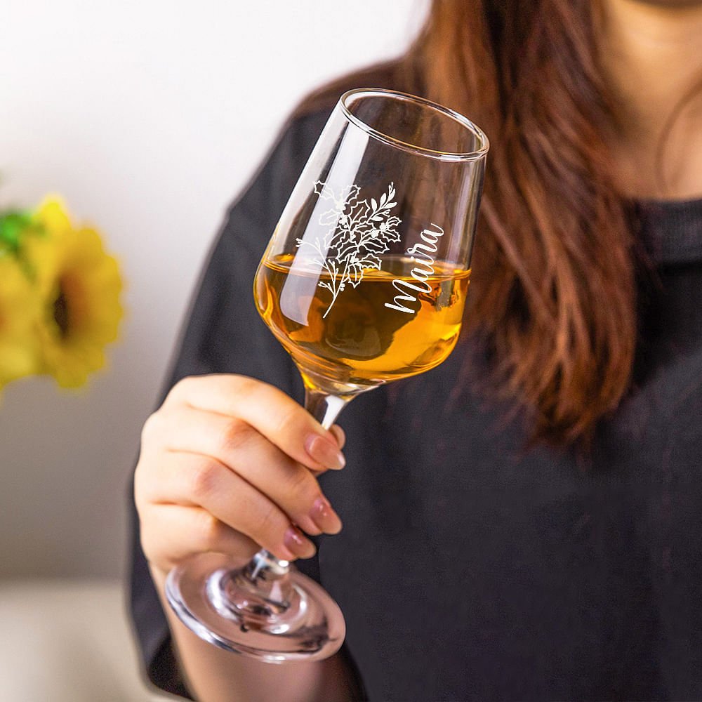 This glass is not limited to wine. It's perfect for enjoying a variety of spirits, cocktails, or even non-alcoholic beverages. It's a versatile addition to any home bar or collection, allowing you to indulge in your favorite libations with Personalised flair. Available in 8.5 oz or 14.5 oz sizes, it's perfect for sipping and savoring and will enhance your overall drinking experience.