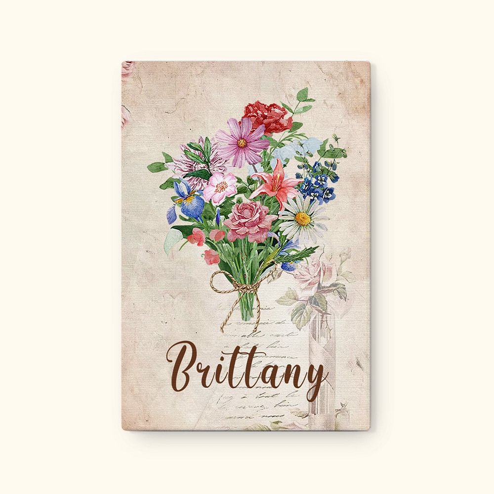 The real beauty of this canvas is its customizability. Imagine the joy and surprise on your loved one's face when they find their name perfectly blended into a floral design, expressed with all the birthday flowers in the form of a bouquet that means forever together.