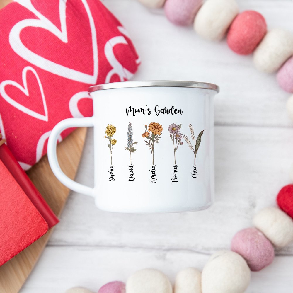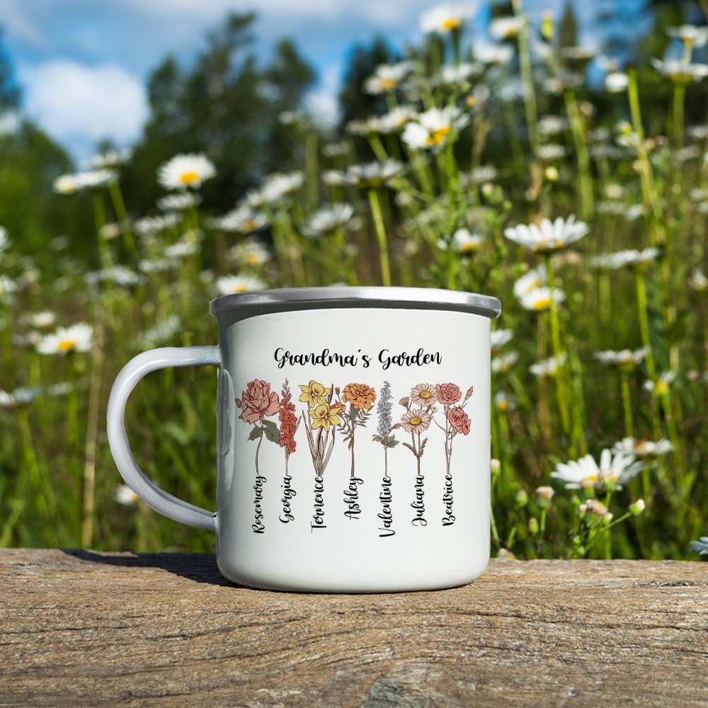 Each month has its unique birth flower that carries symbolic meanings. The birth flower enamel mug embraces this concept by featuring different birth flower designs corresponding to each birth month. You can customize 1 to 15 birth flowers and a title to add some personal taste to this mug, making it a treasured keepsake that will be cherished for many years. Your mom or grandma will feel truly special knowing that this gift was made just for them.