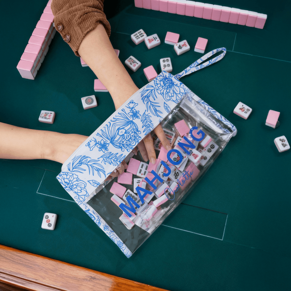 This storage bag blends traditional Chinese blue-and-white porcelain patterns with classic mahjong-themed design, plus a custom name on the transparent panel. The fusion of cultural aesthetics and Personalised details turns a functional bag into a unique, stylish accessory for mahjong lovers.