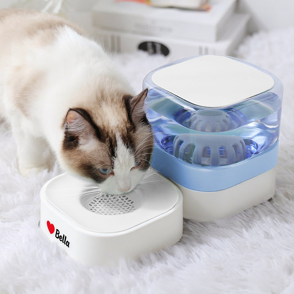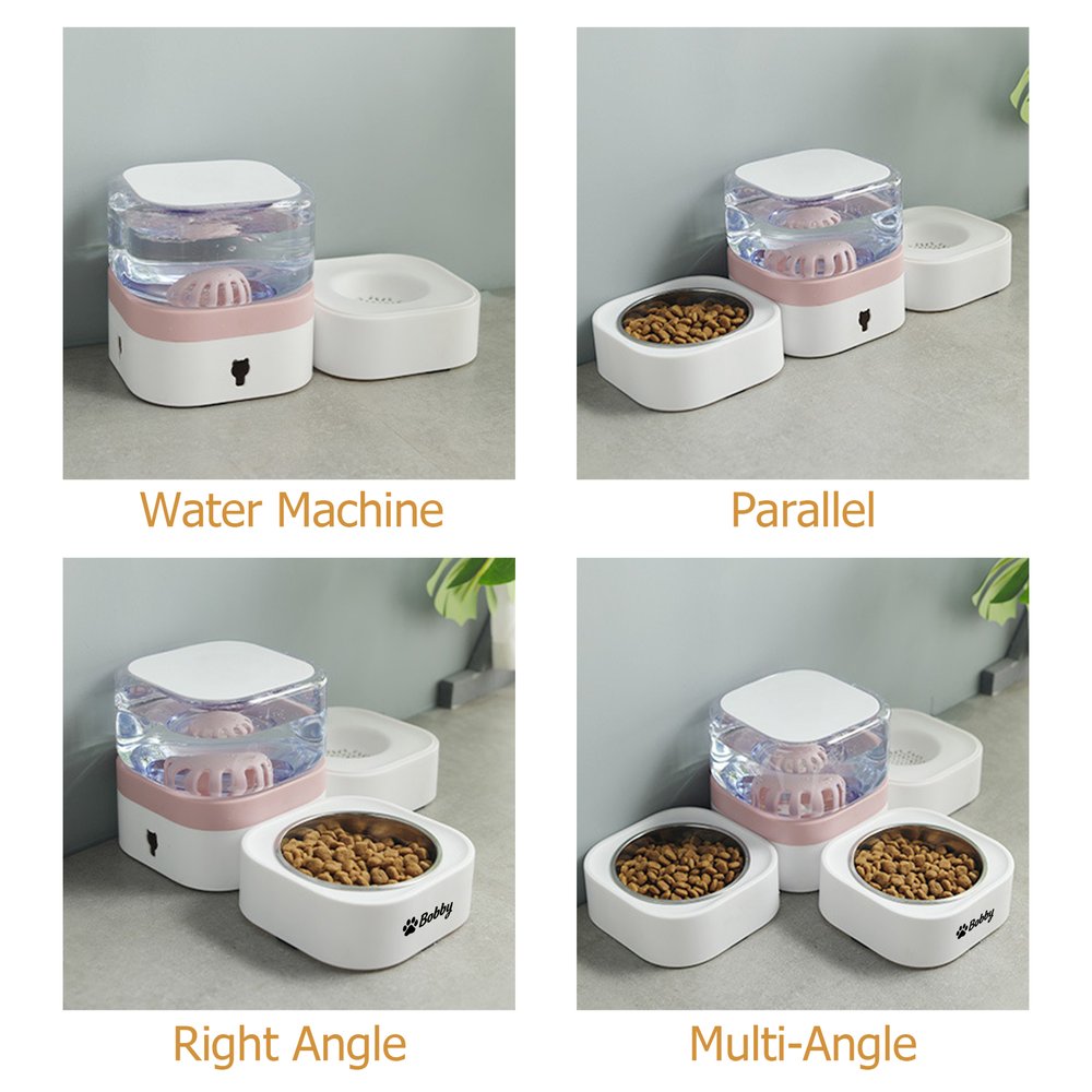 Designed for indoor daily use and multi-pet households, it can accommodate both food and water bowls, effortlessly meeting the simultaneous feeding and drinking needs of multiple pets. The raised edges on both bowls effectively prevent food and water spills, keeping your indoor environment tidy. The 1.8-liter water tank provides approximately 7 days of water for small pets or 5 days for large pets, ensuring your pets' dietary needs are met even when you're away.