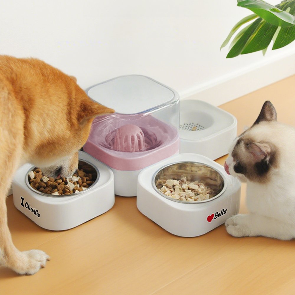 Centreed around adorable pet-themed elements like hearts, paw prints, and bones, paired with customizable pet names, the overall style is cute and warm, perfectly capturing pet owners' affection for their companions. These charming details not only make the feeding and water bowls visually appealing but also convey thoughtful care and love for pets.