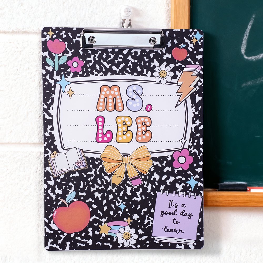 Based on the classic Composition Book design, this clipboard features diverse cartoon patterns that blend retro charm with playful vibes, perfectly suited for educational settings. The timeless background complements study environments while cartoon elements add whimsy, making this clipboard both practical and Personalised—a thoughtful medium for conveying messages.