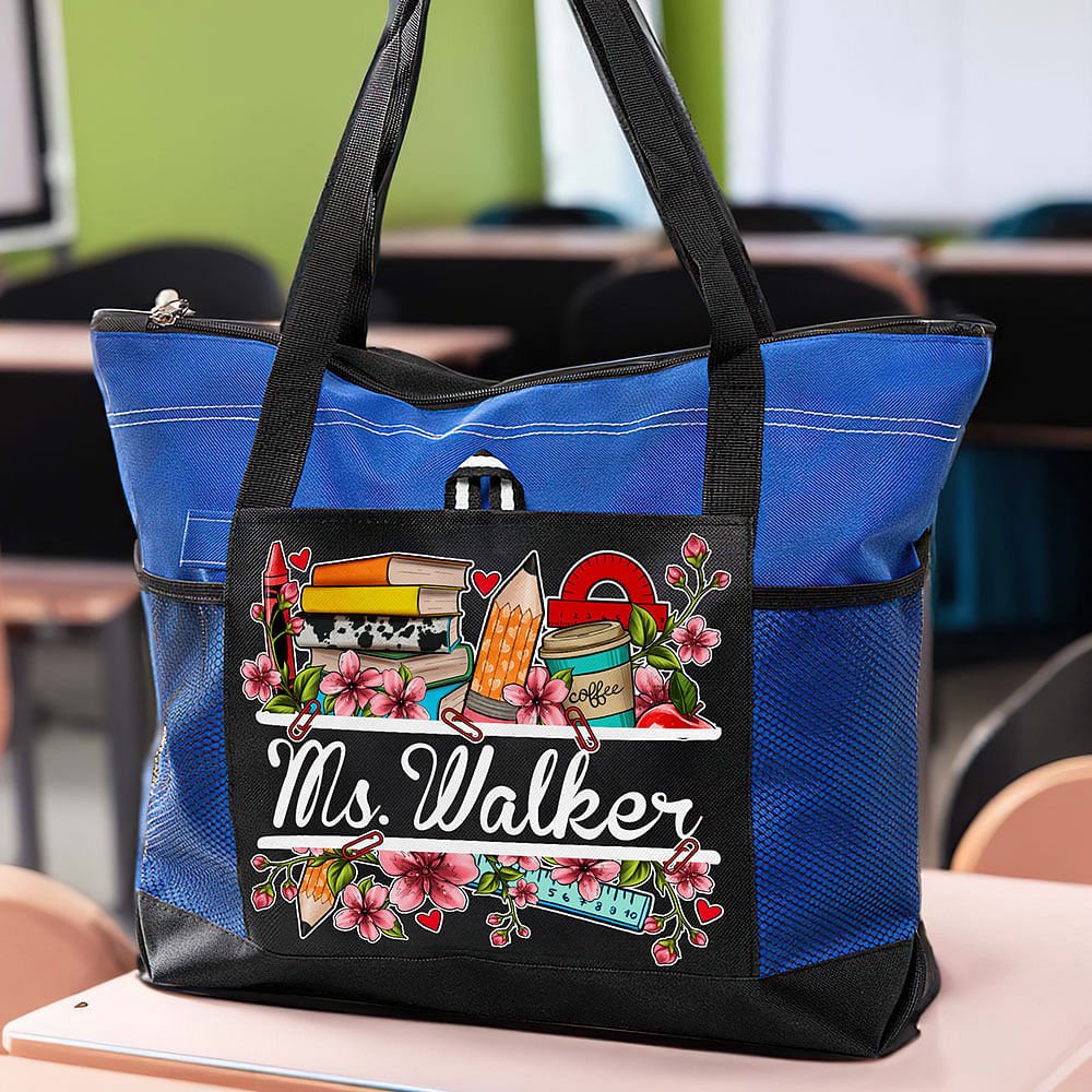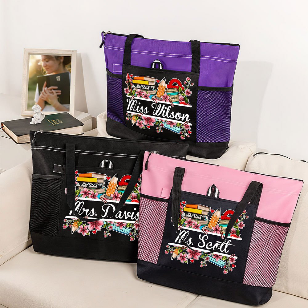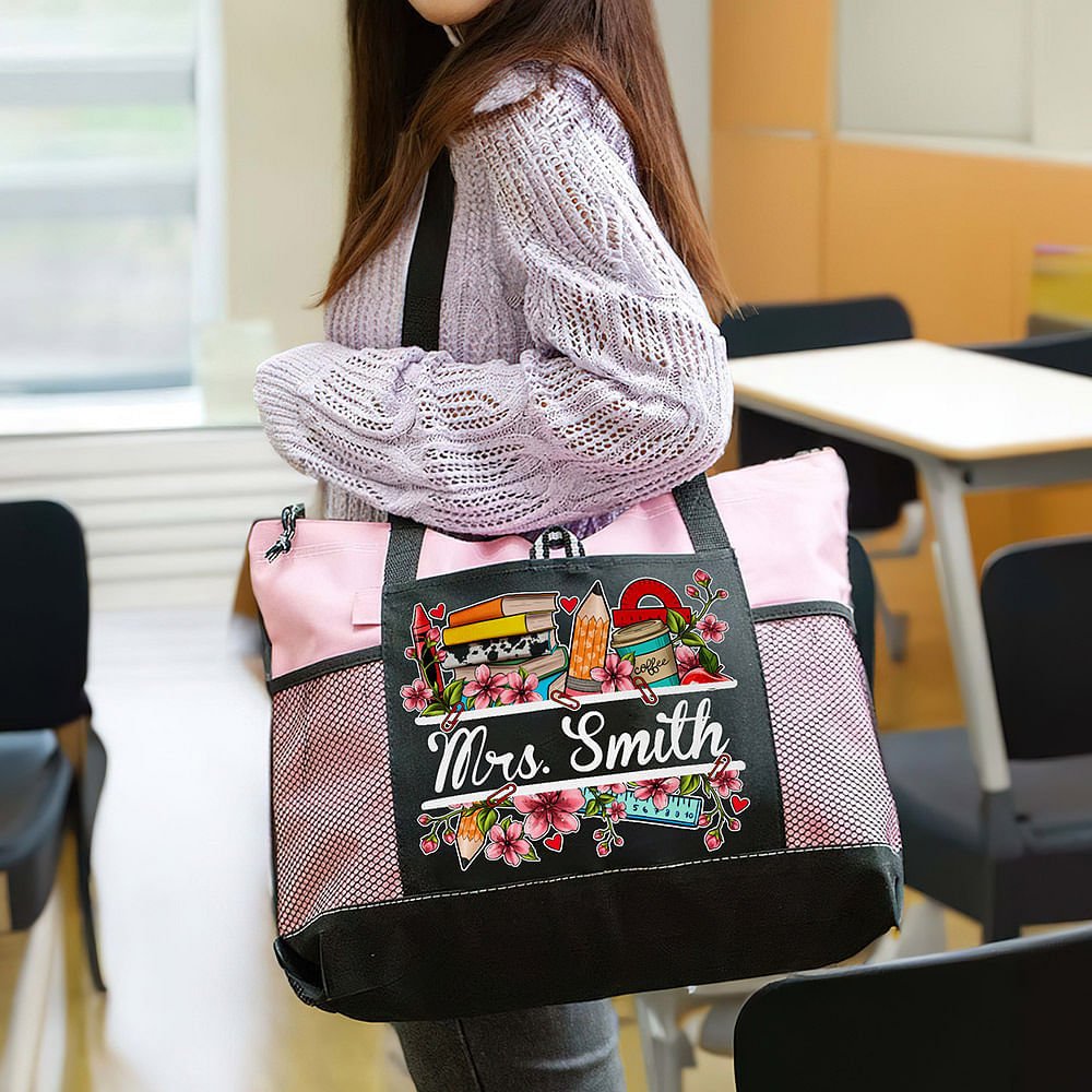 This flower stationery tote bag can be Personalised with the teacher's name, making it a special and one-of-a-kind gift. The customization adds a personal style, allowing teachers to proudly showcase their dedication to education while carrying their belongings in style.
