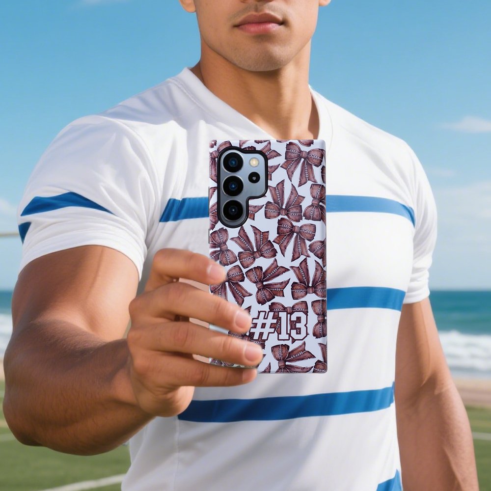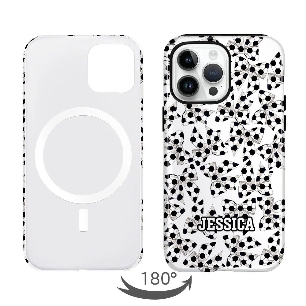 This phone case uses a design that combines a bow with ball sports, adding a playful, sporty feel to your phone case, highlighting your personality and style, and perfectly blending art and elegance. You can also customize your name or the number of the player you support to express your love for the sport.