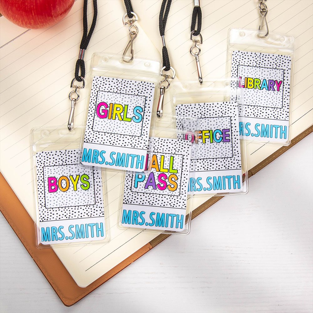 Our Personalised color pass lanyard is made of high-quality, durable materials to ensure long-term use. Each pass can be customized with the teacher's name and the pass's text, adding a Personalised touch to the classroom environment.