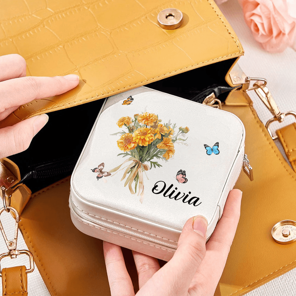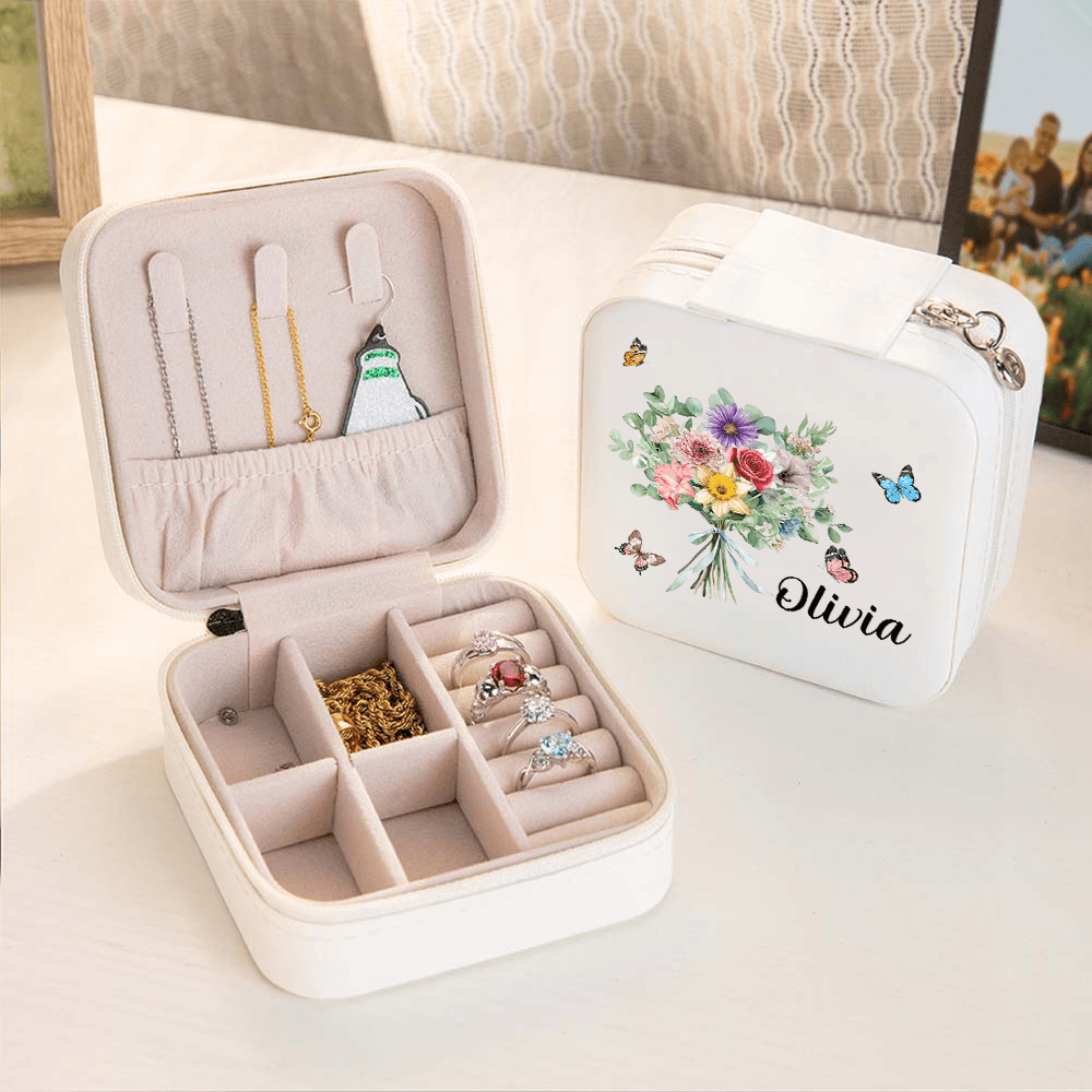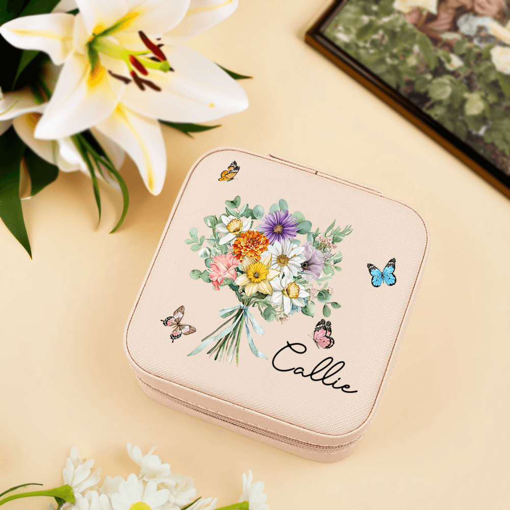 The addition of the butterfly and birth flower bouquet design is simply enchanting. The butterflies symbolize transformation and beauty, while the birth flowers add a personal touch, making this jewellery box unique.